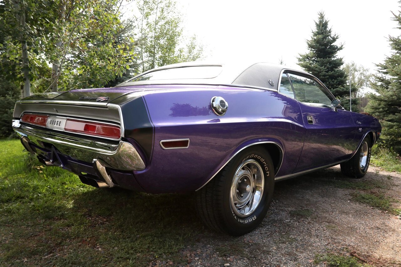 This 1970 Dodge Challenger R/T SE is finished in Plum Crazy Purple over a black leather interior and equipped with a correct U-code 440ci V8, 4-speed manual transmission, and factory limited-slip differential.
