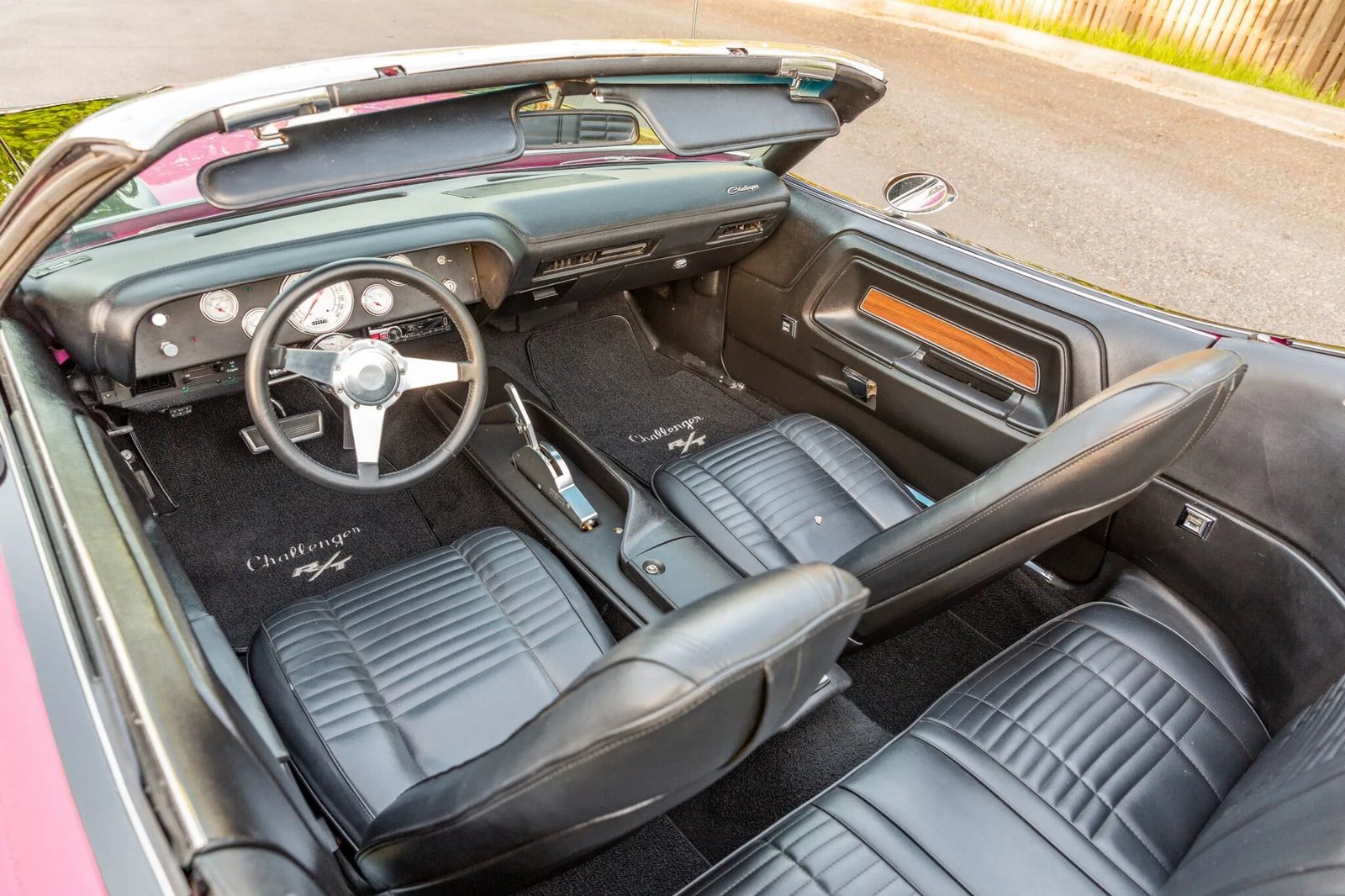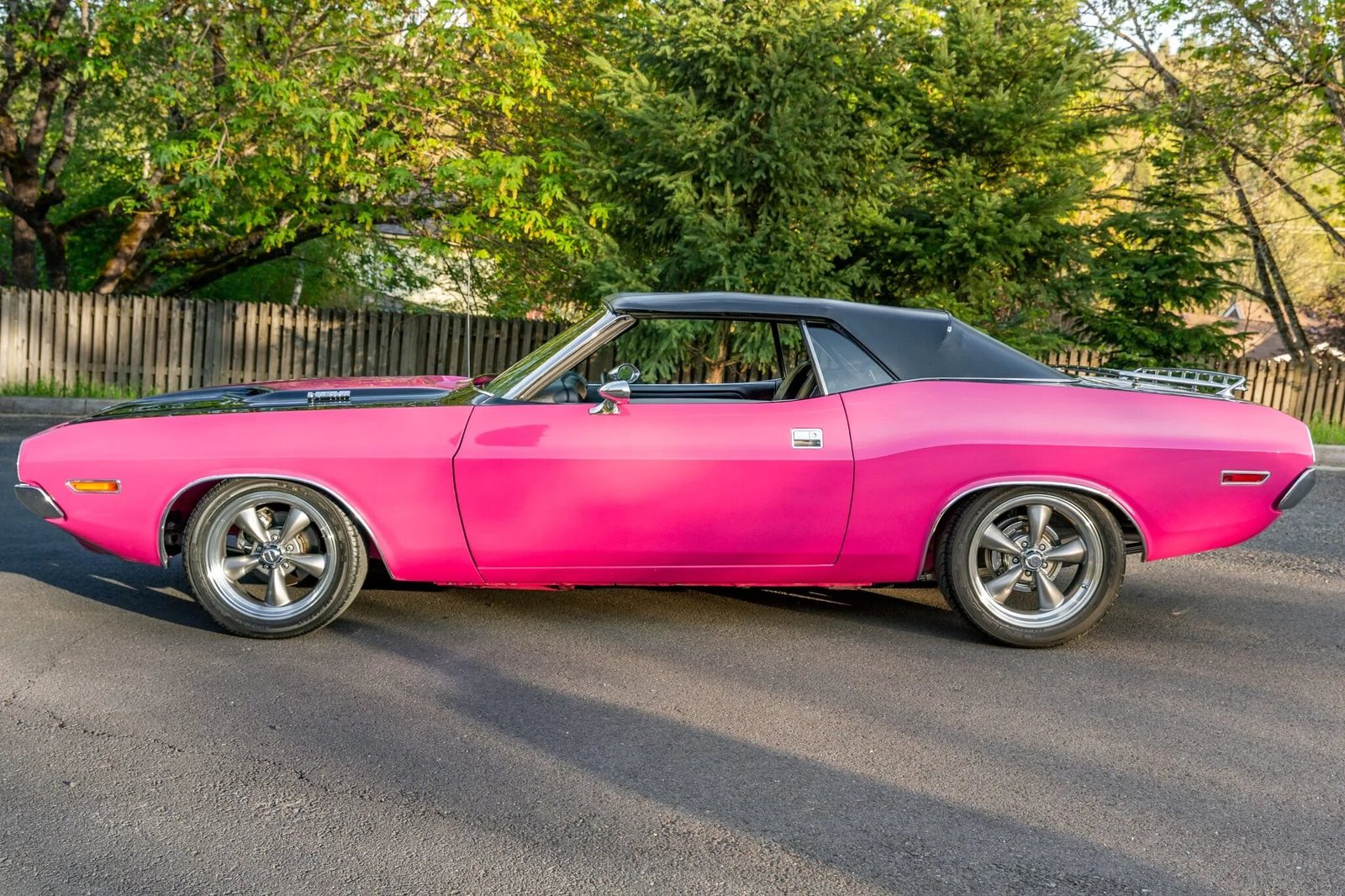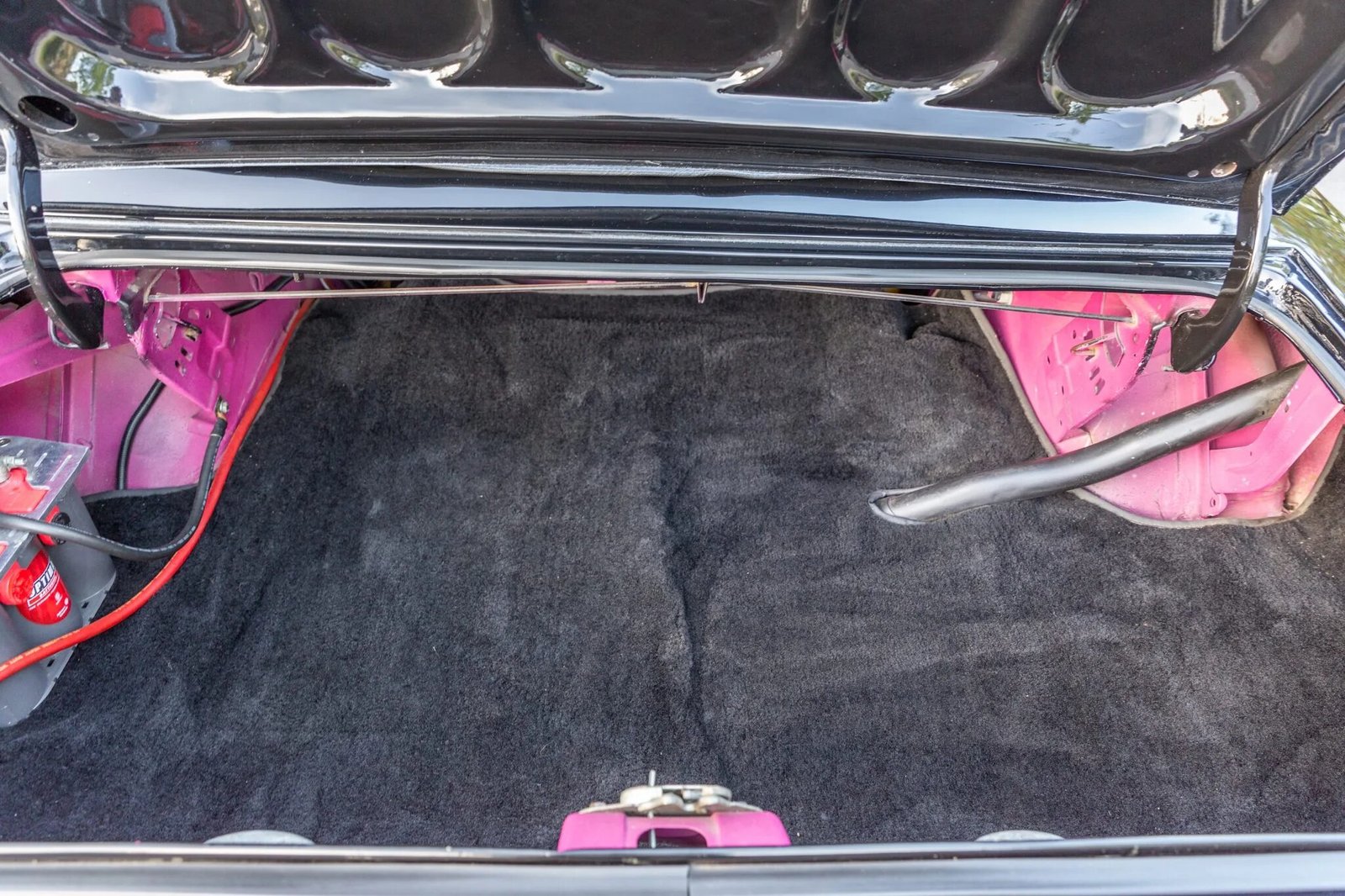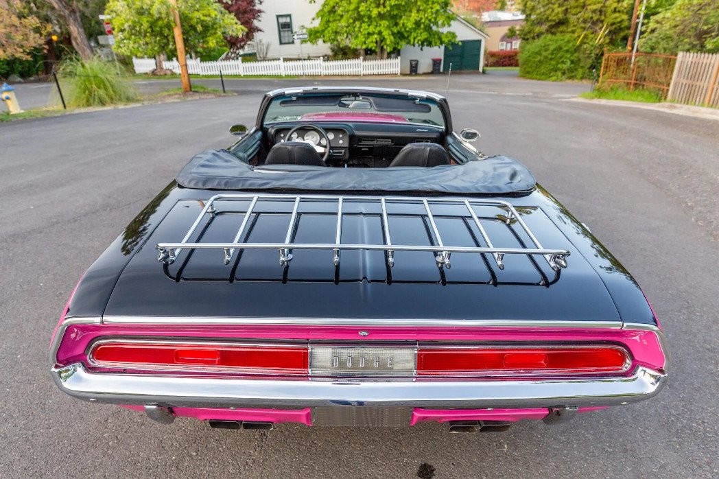 The car have been repainted in the factory shade of Panther Pink, and it features a black trunk lid and hood.