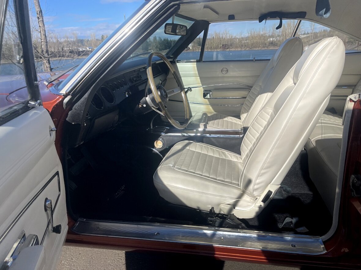The car was finished from the factory in Dark Burnt Orange Metallic (FK5) with a white vinyl roof.