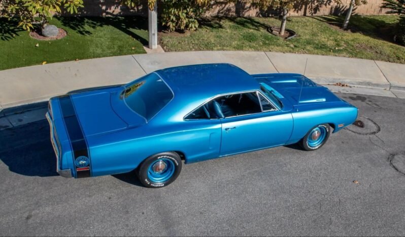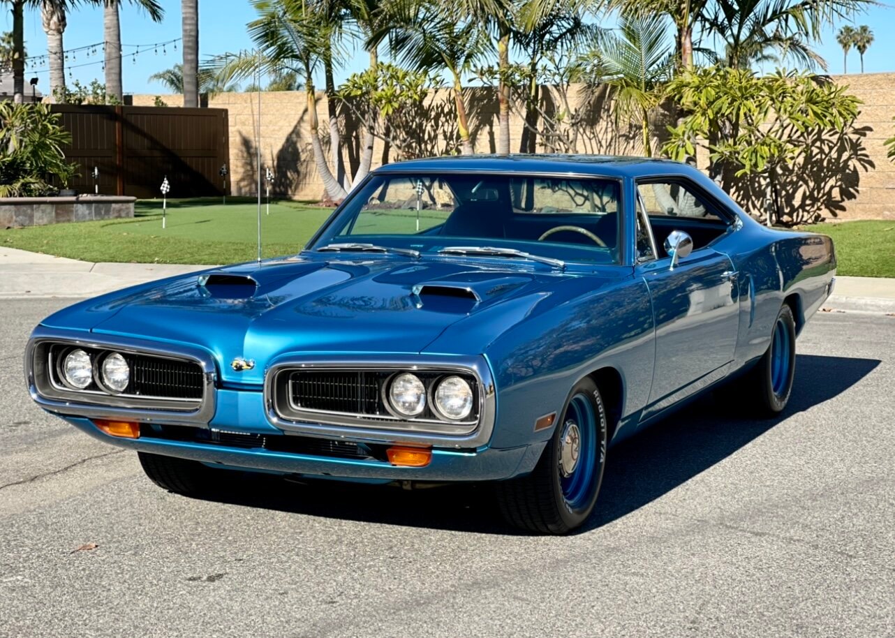 This 1970 Dodge Super Bee was built at the St. Louis, Missouri assembly plant on August 11, 1969 and is finished in blue over dark blue vinyl upholstery.
