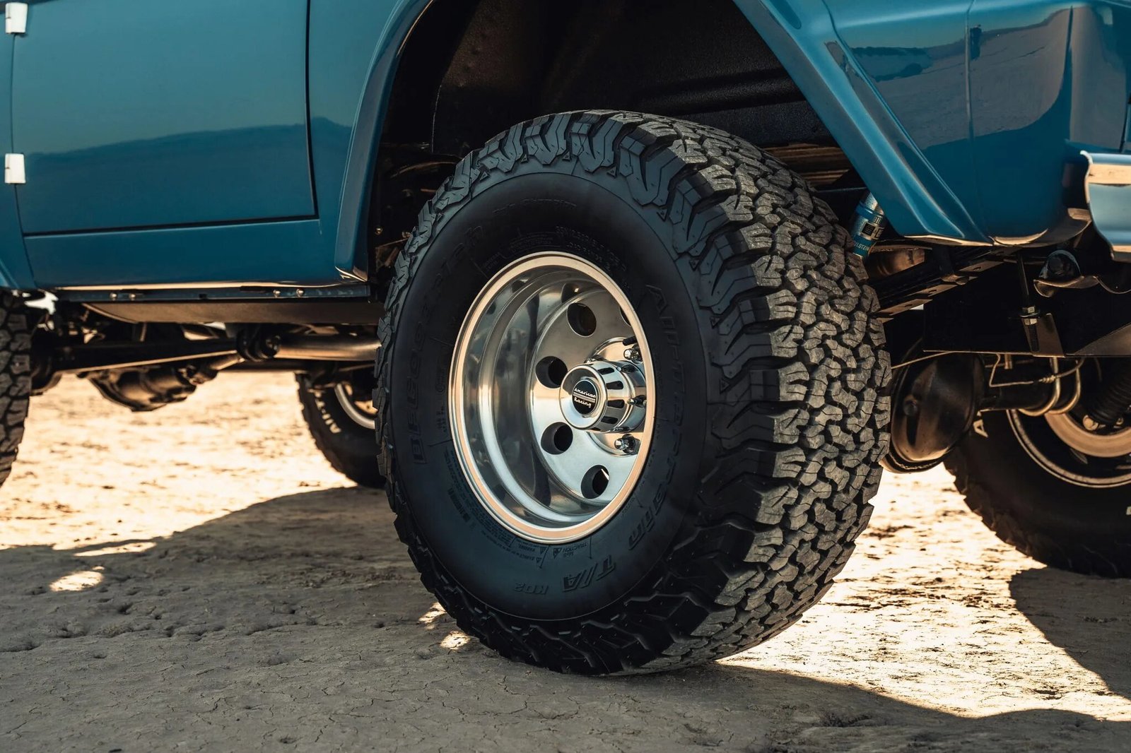American Racing 15″ alloy wheels are fitted with 33×12.5″ BFGoodrich K02 tires.