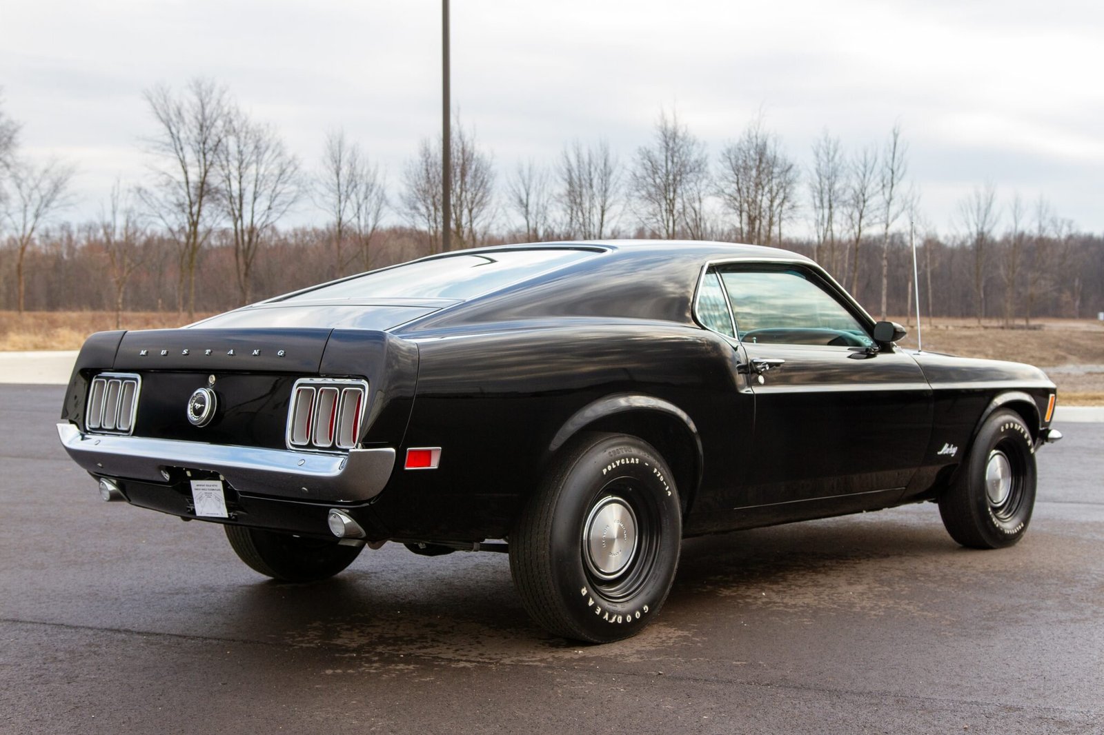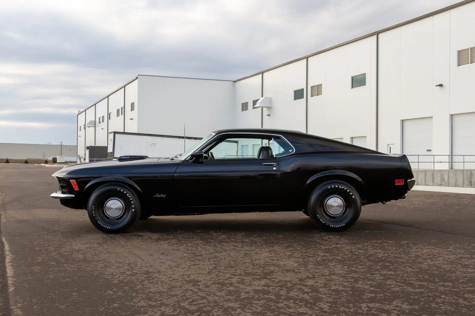 This 1970 Ford Mustang SportsRoof is powered by a 428ci Super Cobra Jet V8 mated to a four-speed manual transmission and a 4.30:1 Traction-Lok differential, and it has been refinished in black on black.