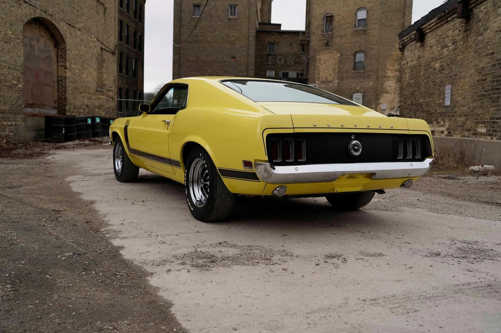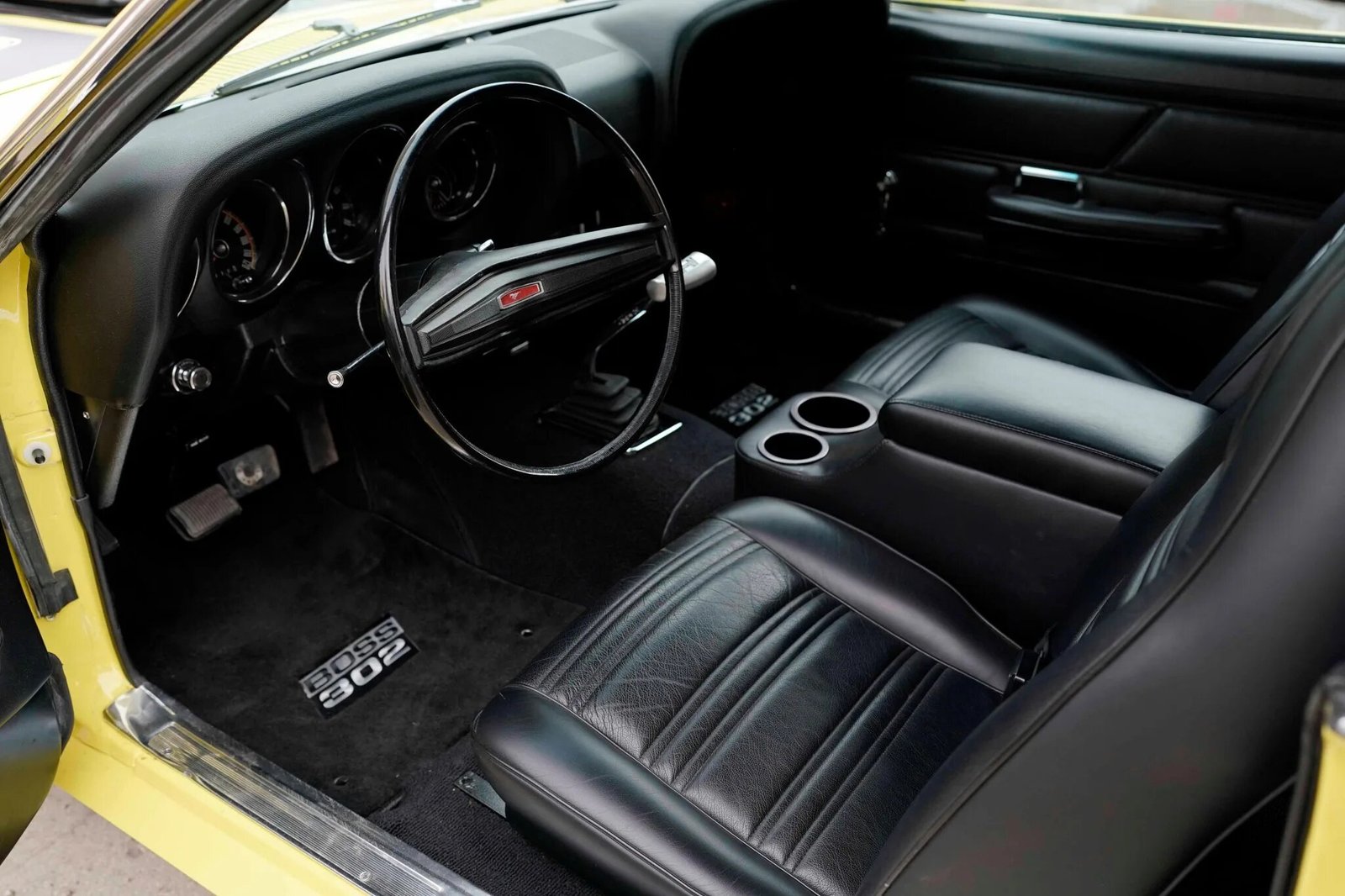 The car is optioned with power-assisted front disc brakes, which were standard equipment on the 1970 Boss 302.