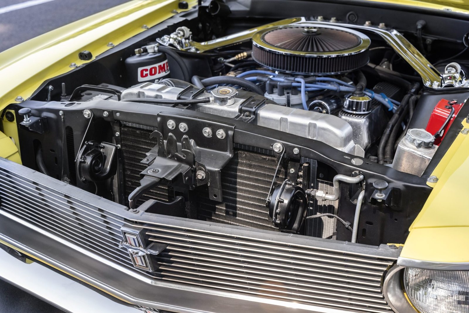 The 302ci V8 have been rebuilt and balanced, and it is fitted with a K&N air filter, an MSD ignition, a 7-quart oil pan, stainless steel headers, and a Comp Cams vacuum canister reservoir.