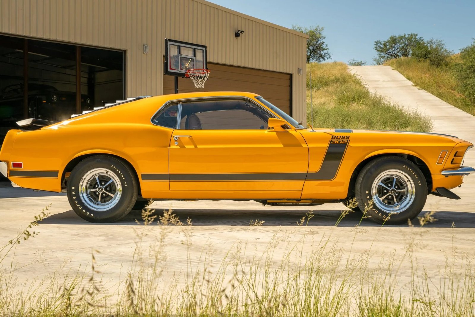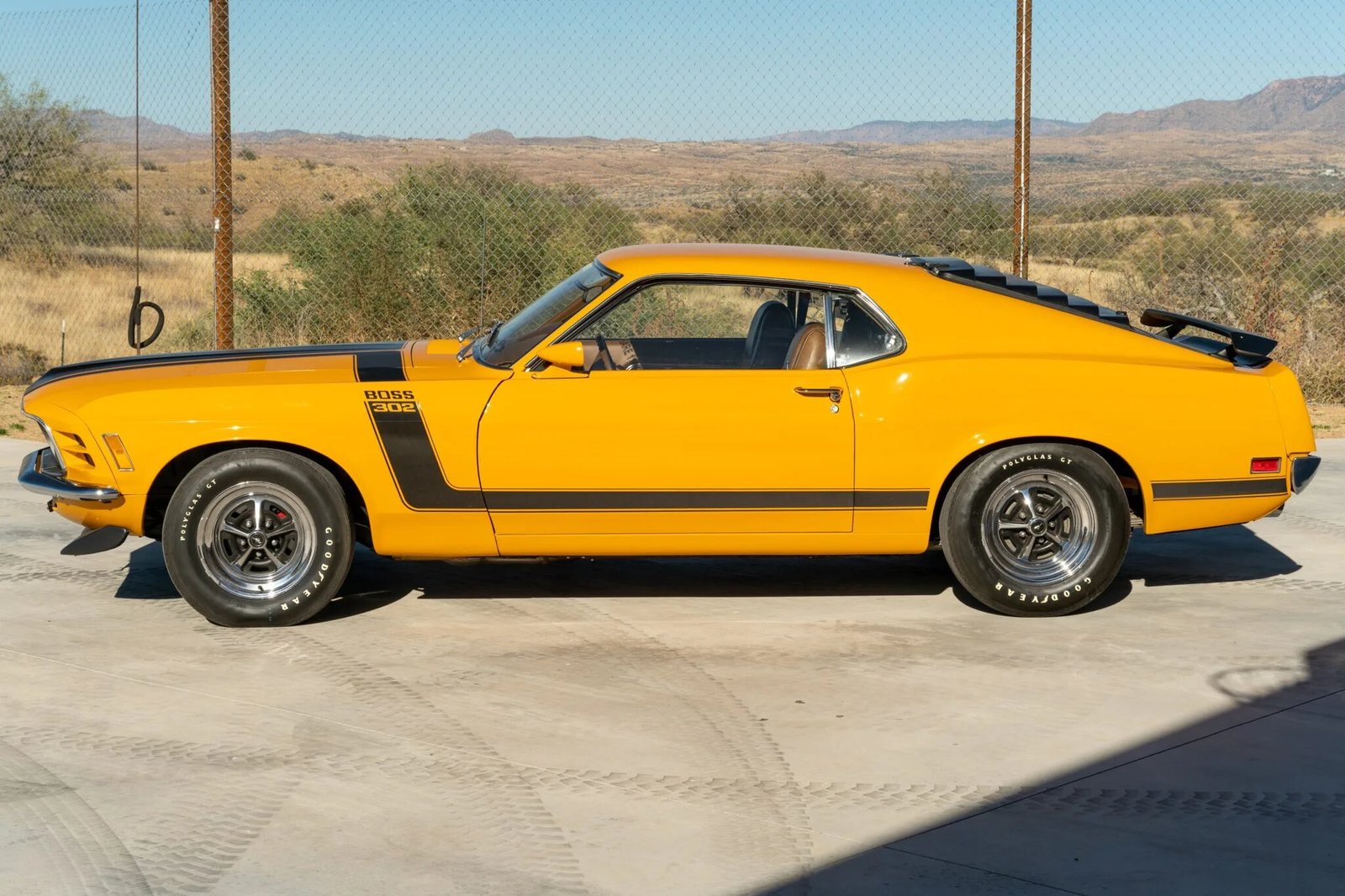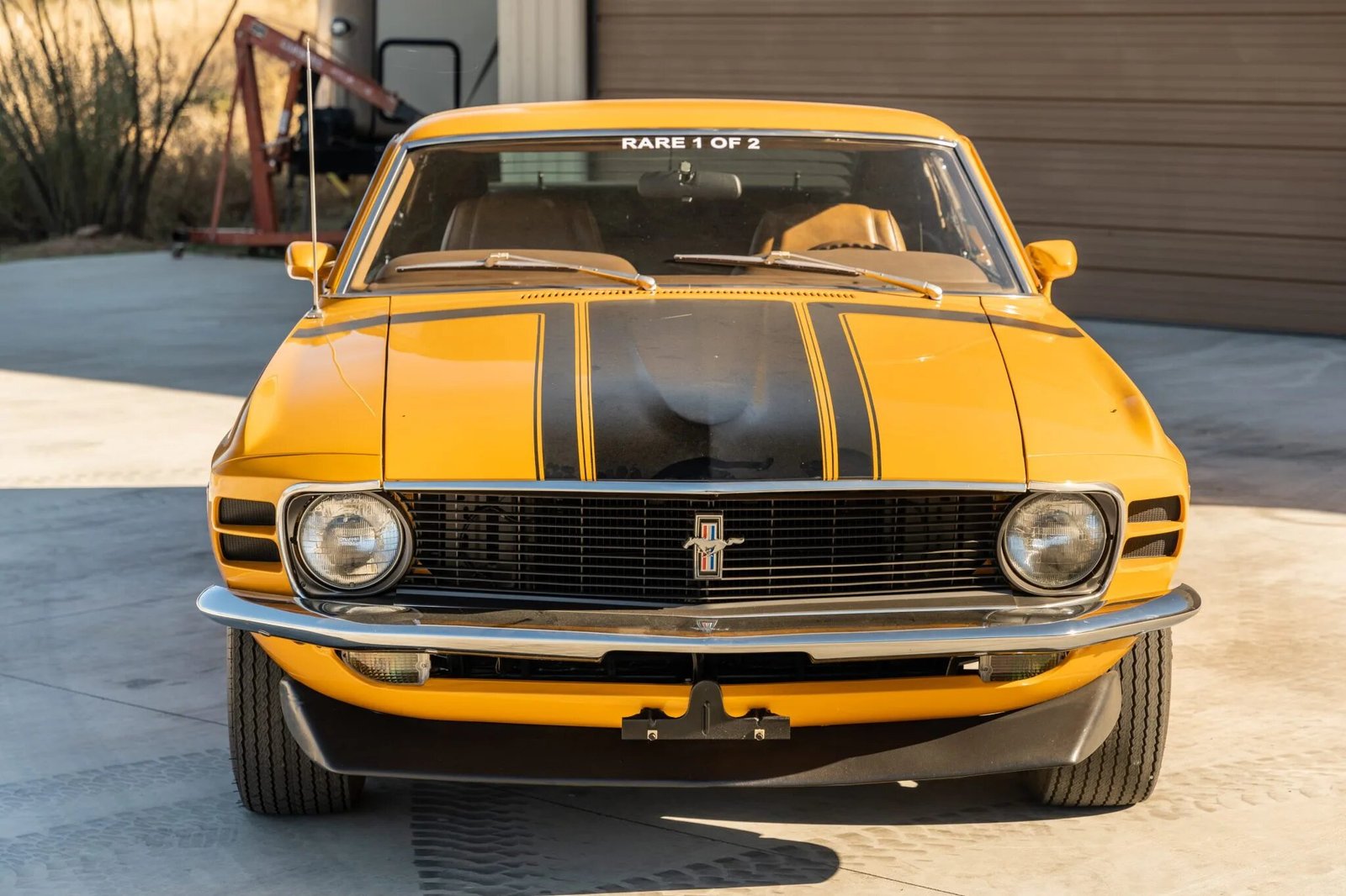 This 1970 Ford Mustang Boss 302 is one of two examples manufactured in Grabber Orange over a Medium Ginger Spectrum cloth interior for the model year.