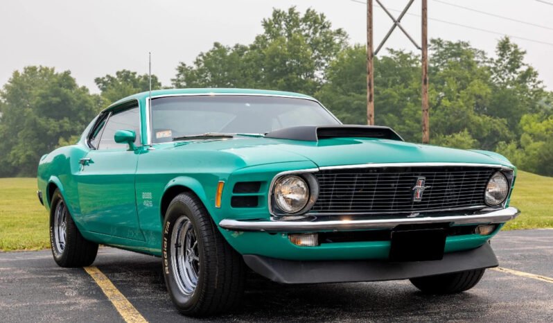 This 1970 Ford Mustang Boss 429 is one of approximately 500 examples produced for the model year and was built on October 14, 1969. Assigned Kar Kraft number 2232, the car was originally delivered to Woody Sander Ford in Cincinnati, Ohio, and was refurbished around 2010. Is powered by a 429ci V8 paired with a four-speed manual transmission. Finished in green over black vinyl, the car is equipped with a Traction-Lok rear axle, the Drag Pack, a competition suspension, the Decor Group, the Convenience Group, power steering, 15″ Magnum 500-style wheels, power-assisted front disc brakes, an MSD electronic ignition system, a Hurst shifter, an AM radio, and a heater.