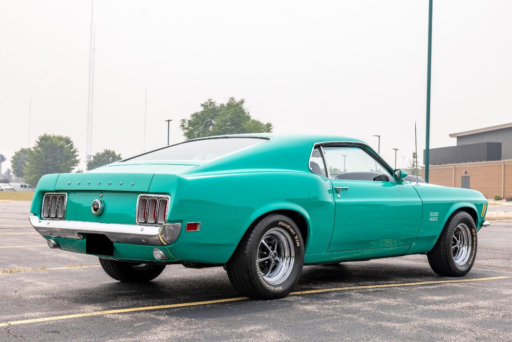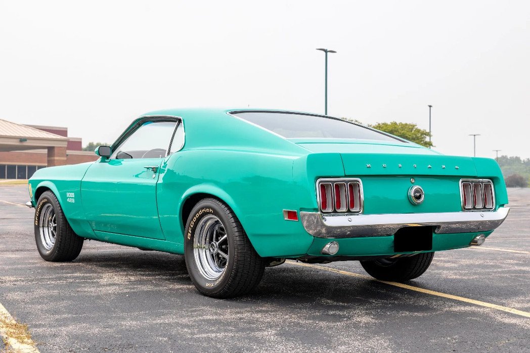 Exterior features include a hood scoop, Boss 429 graphics, a front spoiler, and dual exhaust outlets.