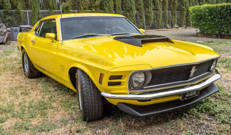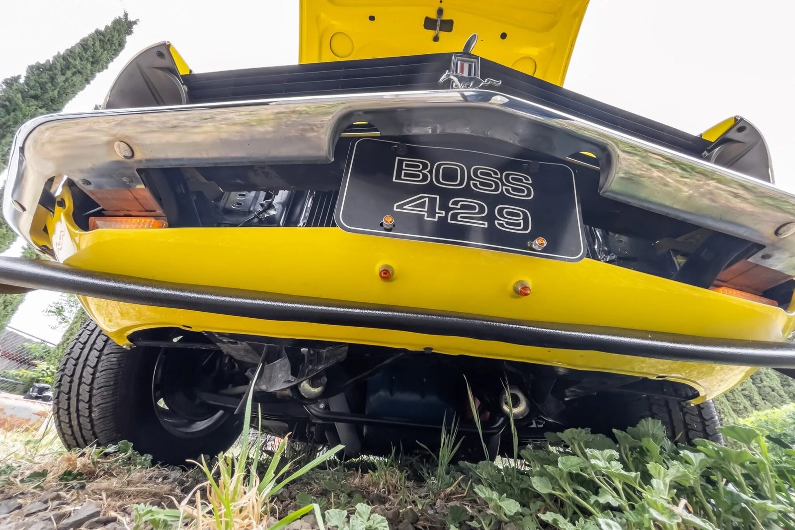 This 1970 Mustang Boss 429 is finished in yellow over black upholstery and was initially delivered to Don Seelye Ford of Kalamazoo, Michigan. Power comes from a numbers-matching 429ci Boss V8 equipped with a four-barrel Holley carburetor mated to a four-speed close-ratio manual transmission and 3.91 Traction-Lok rear axle. Equipment includes 15″ Magnum 500 wheels, power-assisted front disc brakes, power steering, the Drag Pack, the Competition Suspension Package, front and rear spoilers, and rear window louvers as well as a Rim Blow steering wheel, Hurst shifter, and a tachometer.