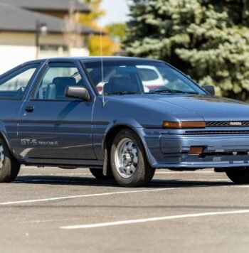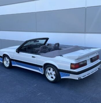 The 15″ five-spoke wheels feature Shelby-logo center emblems and wear Cooper Cobra Radial T/A white-letter tires that were installed in preparation for sale.
