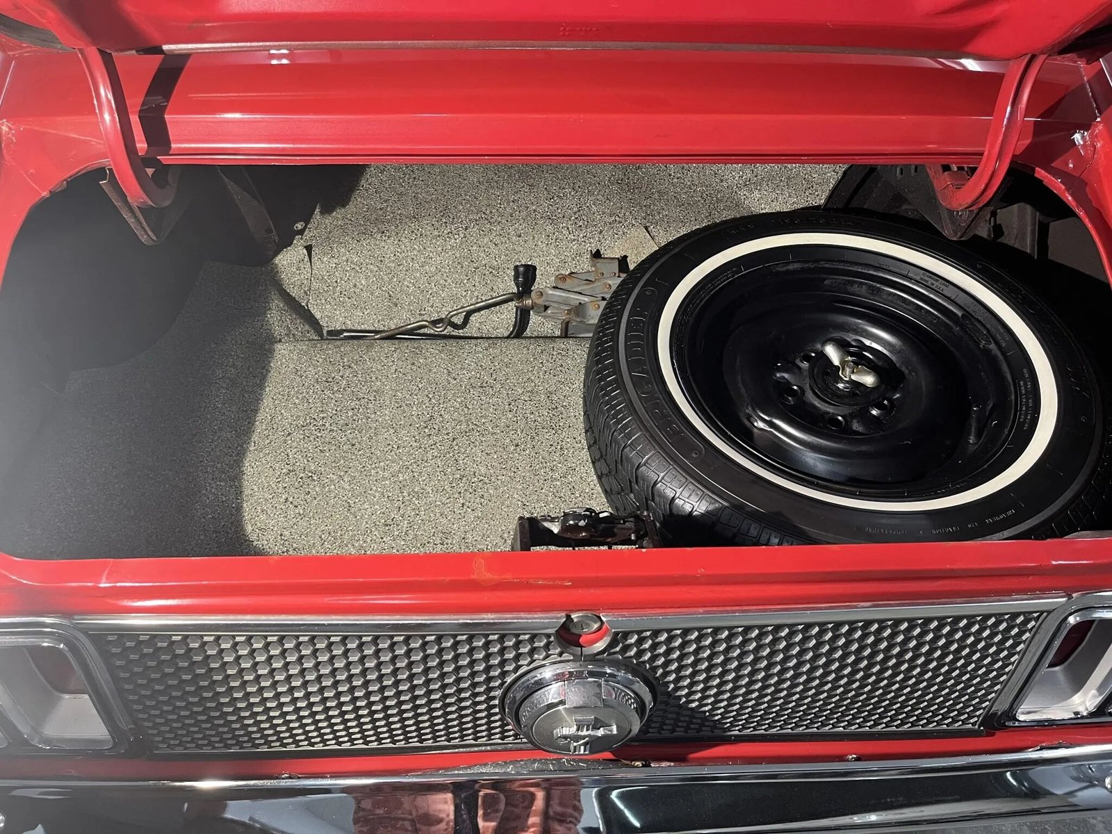 The 14″ steel wheels wear polished covers with gray-painted centers and are mounted with BFGoodrich Radial T/A tires measuring 245/60. A full-size spare is housed in the trunk. The car is equipped with power steering, and braking is handled by power-assisted front discs and rear drums.