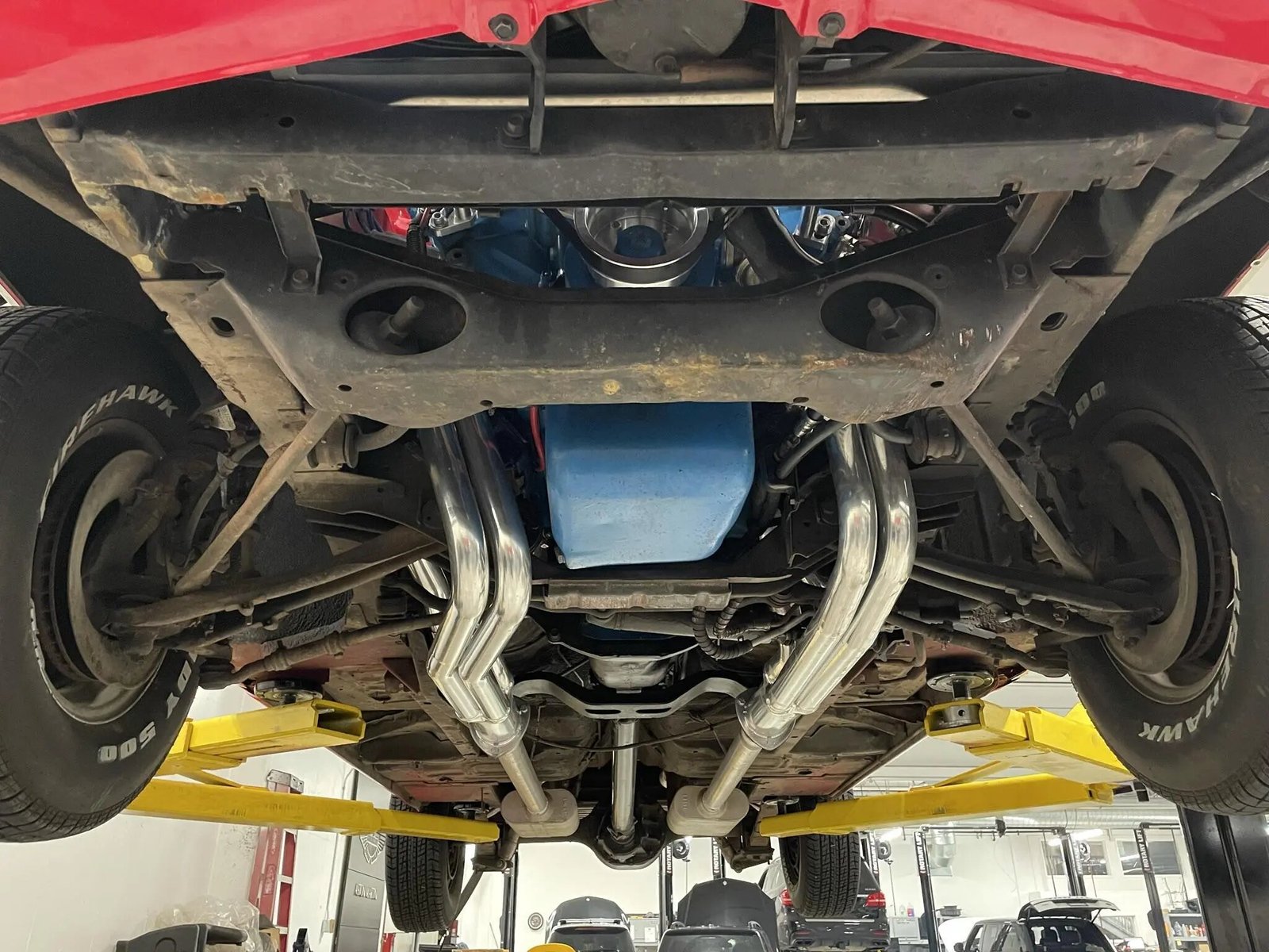 Power is sent to the rear wheels through a four-speed manual transmission that was overhauled in August 2021, at which time Hooker headers were fitted and the exhaust gaskets were also replaced.