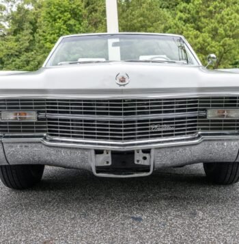 The N-code 429ci V8 is modified with a Weber carburetor, an Edelbrock intake manifold, a K&N air cleaner, an upgraded alternator, a March Performance serpentine belt system, chrome-finished valve covers, a dual electric radiator fan system, and a Mallory Ignition electronic ignition system with MSD wires.
