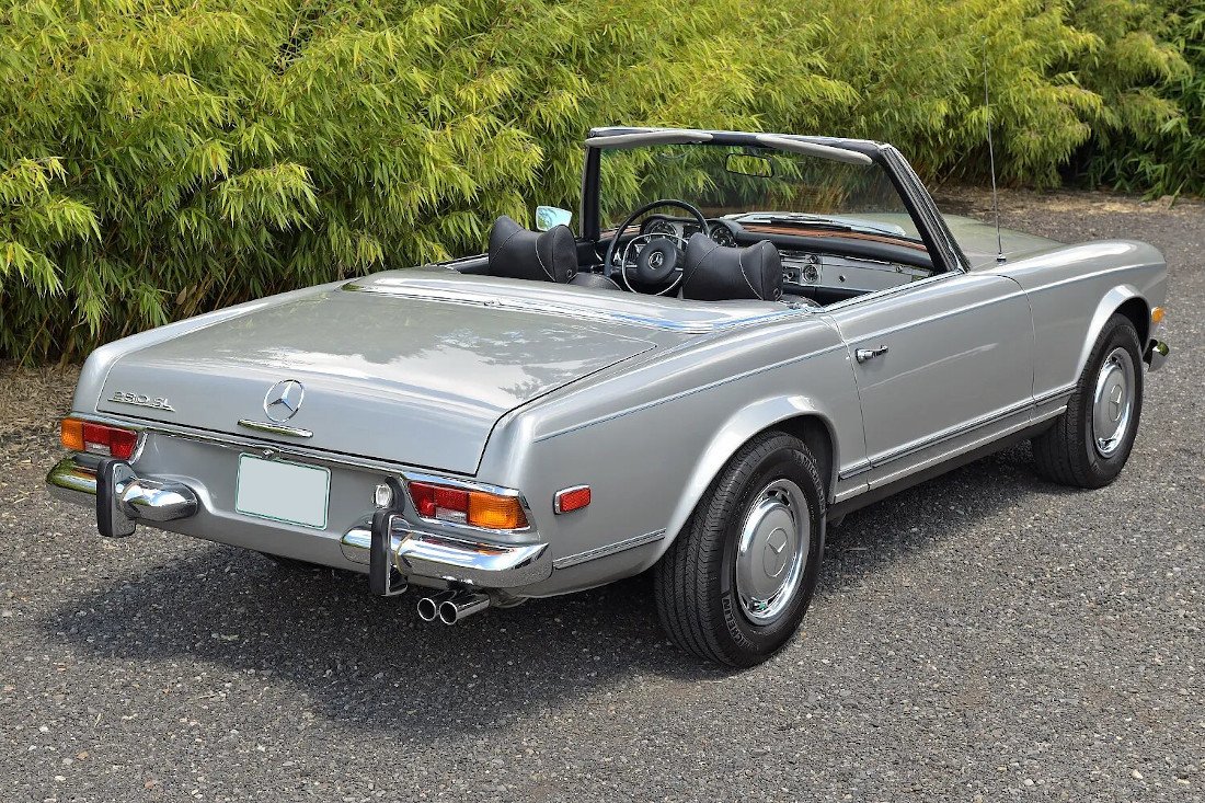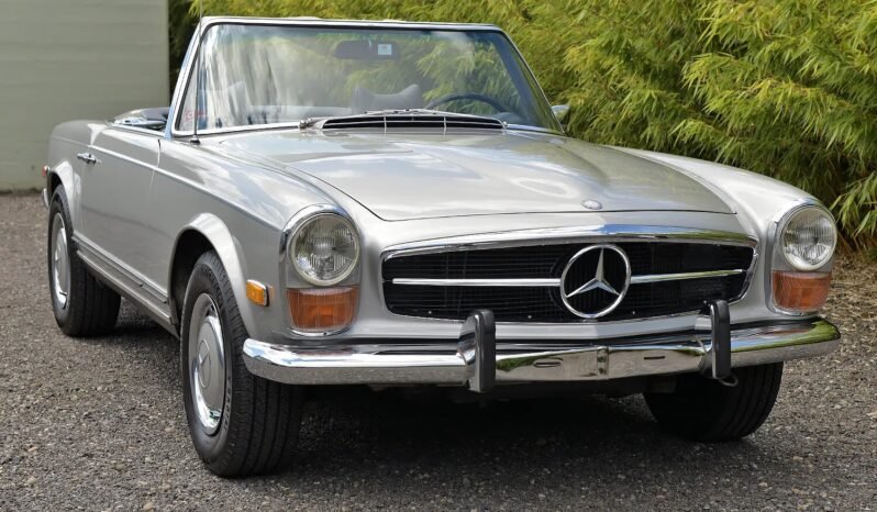 Power is provided by a 2.8-liter inline-six equipped with fuel injection and mated to a four-speed automatic transmission. The car wears a repaint in Silver Grey Metallic and is equipped with a Becker Mexico stereo, power steering, and Hella H4 headlamps.