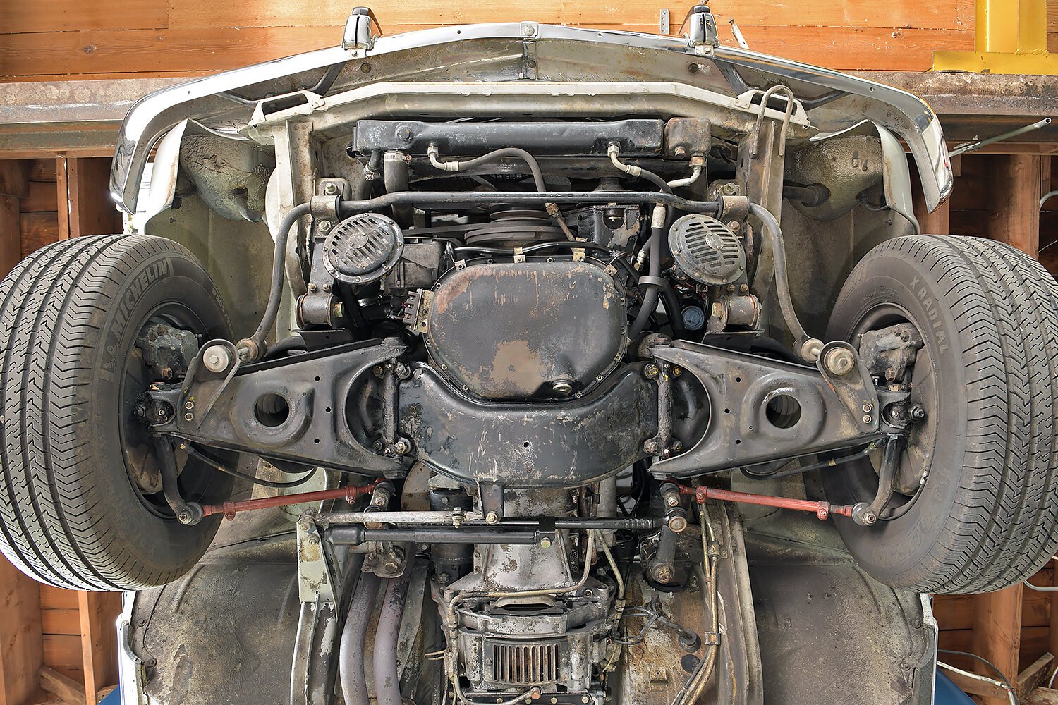 Factory 14” steel wheels retain their stock wheelcovers as well as 205/70 Michelin X radials tires.