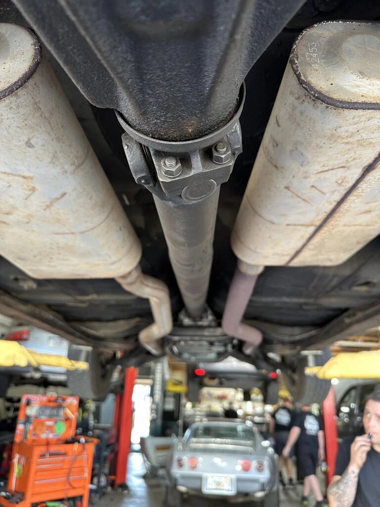 A dual exhaust system with Flowmaster mufflers has been installed.