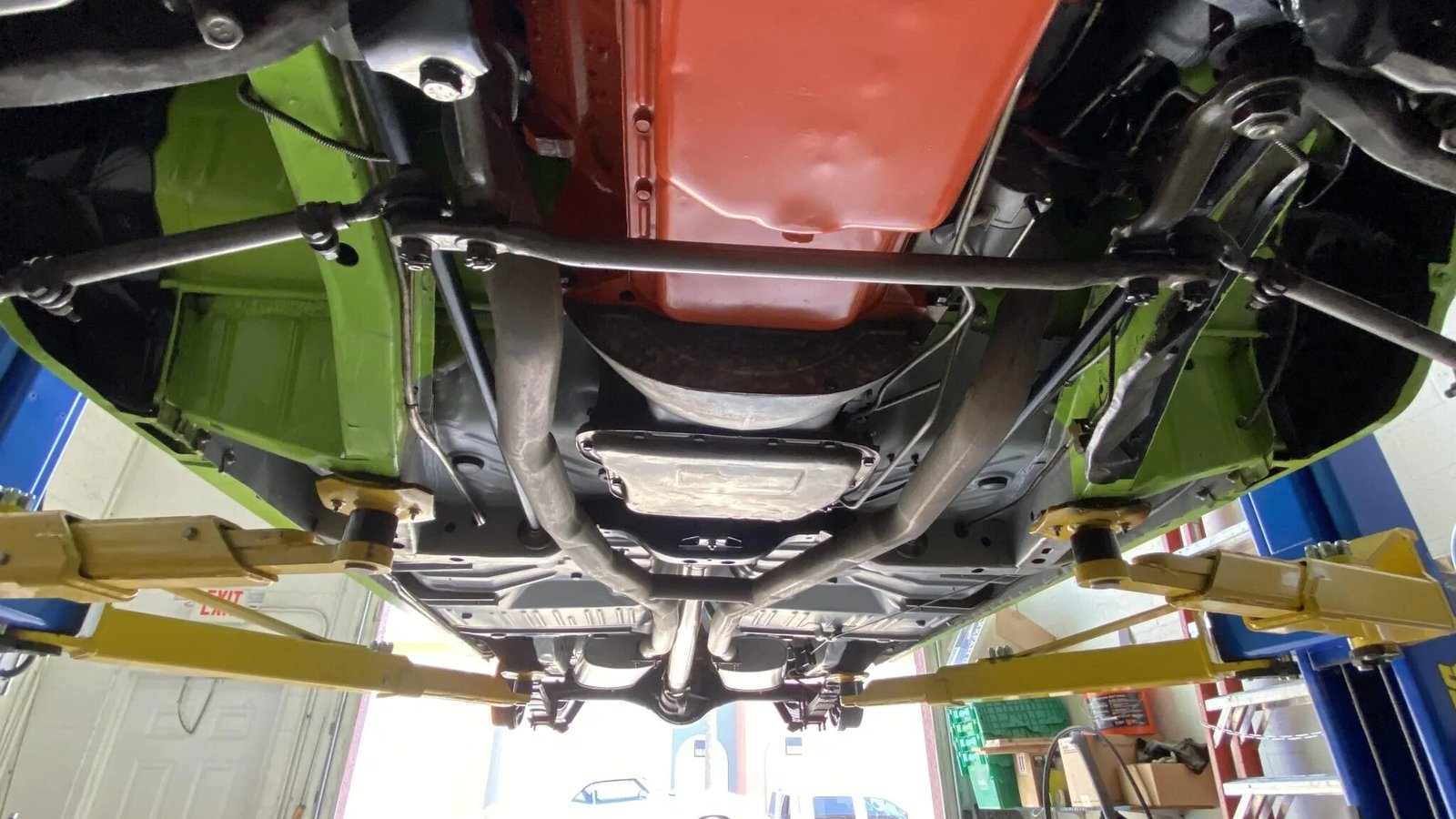 Power is delivered to the rear wheels through a replacement Torqueflite three-speed automatic transmission.