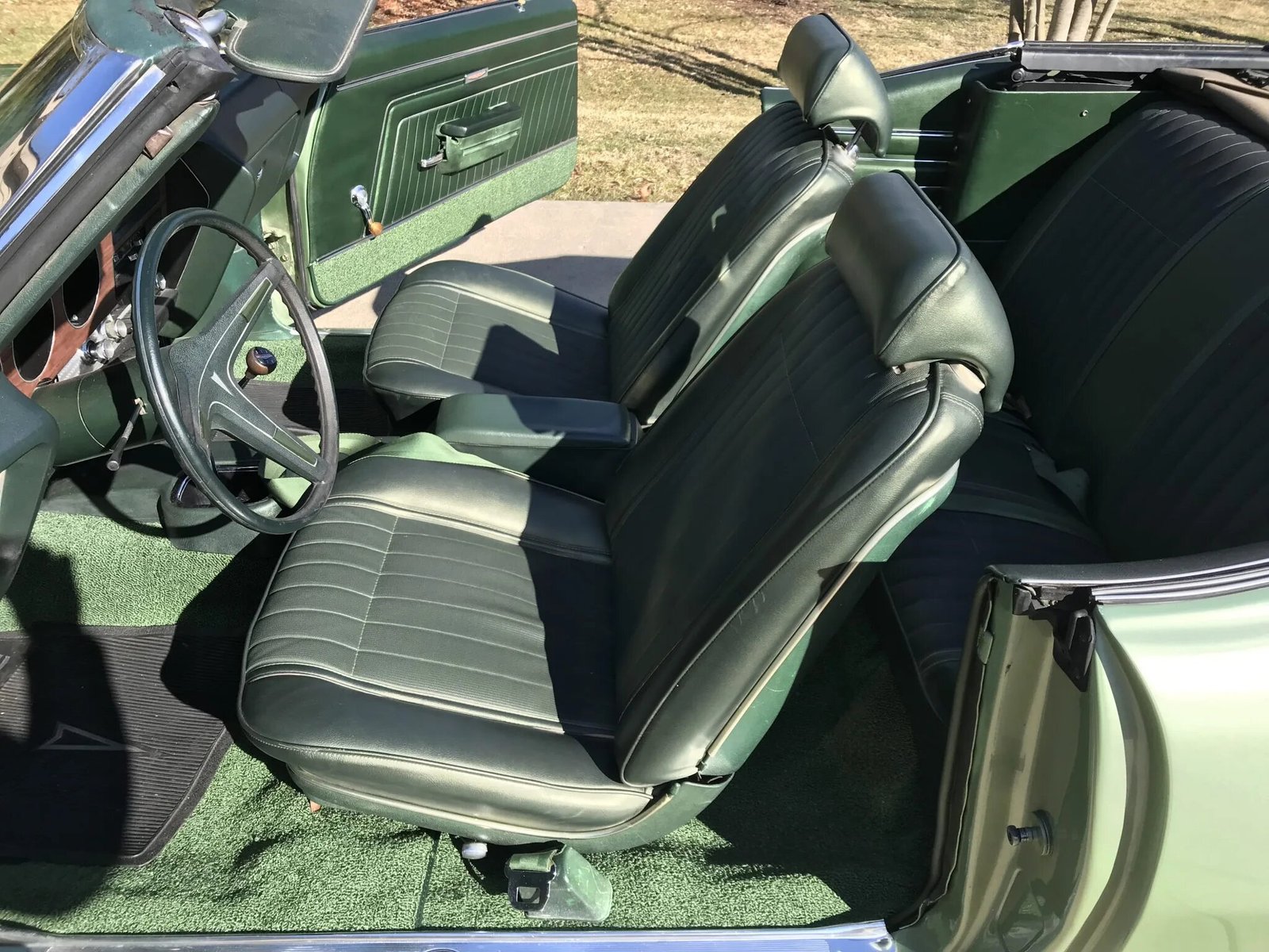 The car have been refinished in Palisade Green, features include a white power convertible soft top, Endura front bumper, quad headlamps, bright finished rocker trim, a pair of hood scoops, and dual exhaust outlets that exit below the rear bumper.