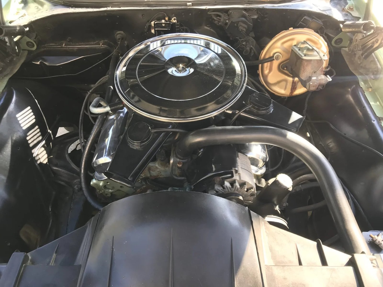 The replacement 400ci V8 breathes through a four-barrel carburetor and features an Accel electronic ignition and a chrome air cleaner lid and valve covers.