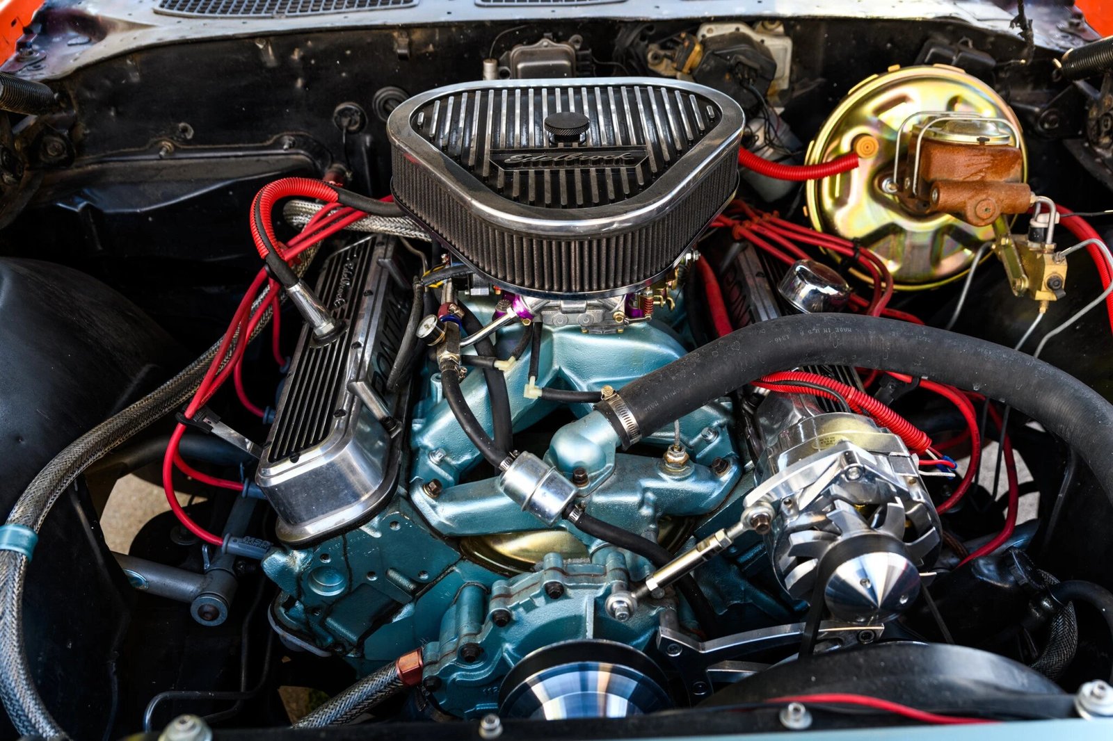 Further updates include a high performance camshaft, Edelbrock air filter element and valve covers, braided fuel lines, polished pulley hardware, and an aftermarket exhaust.