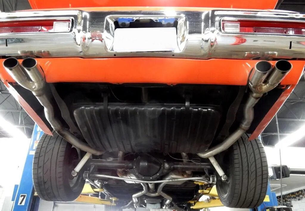 The car is finished in orange over a black interior, and equipment includes 18″ wheels, a custom exhaust system, a modern stereo, and more.