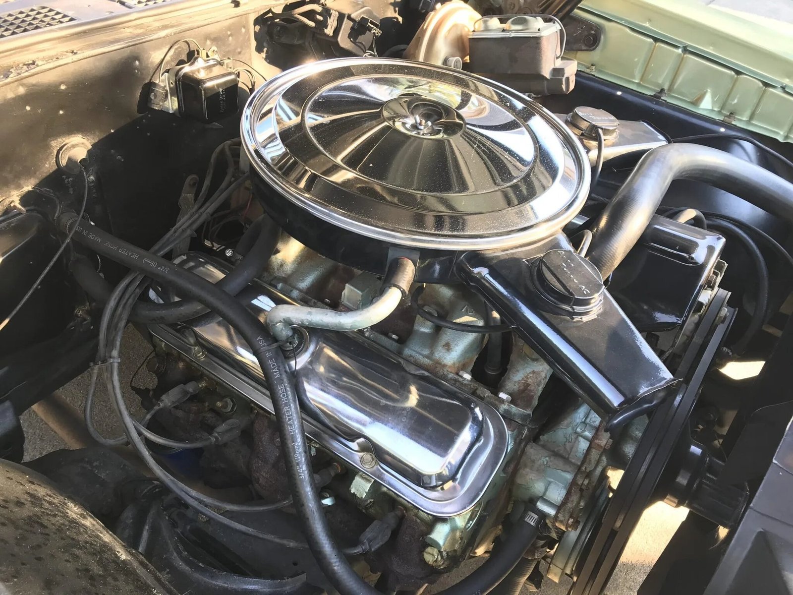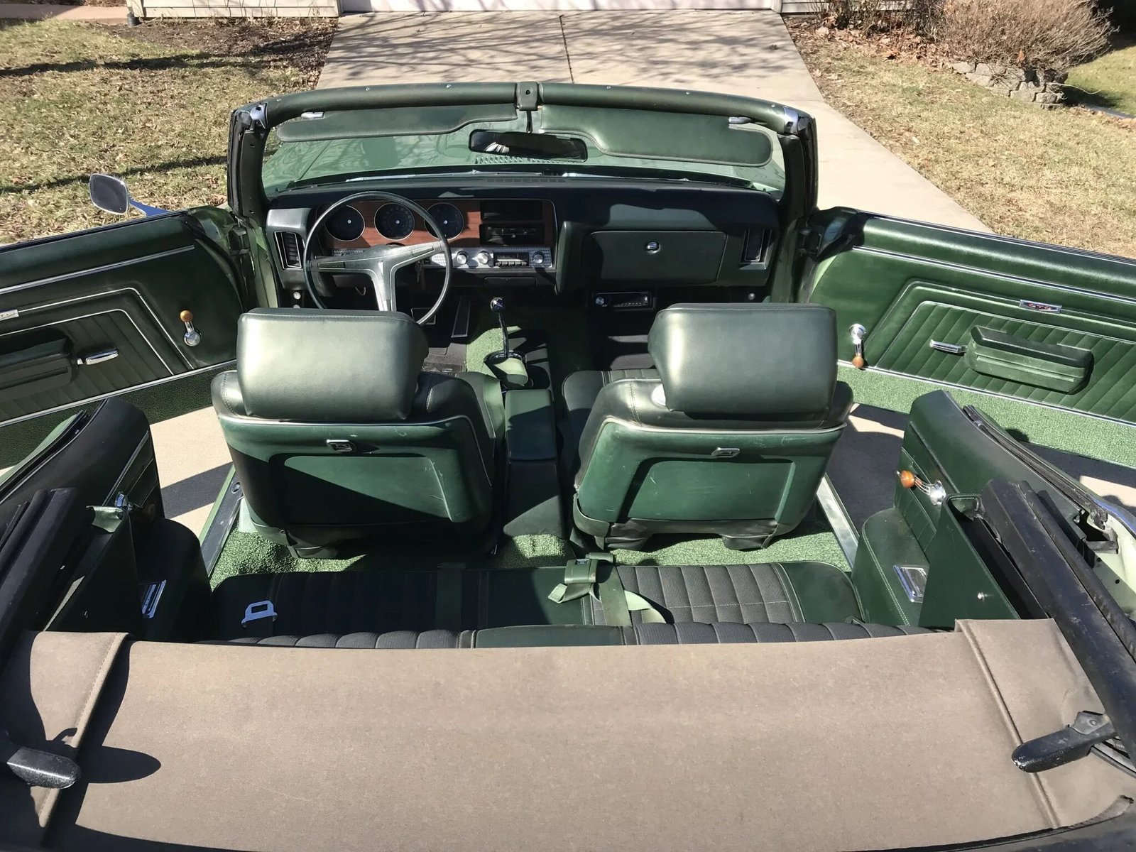 The car is finished in Palisade Green over green upholstery and powered by a replacement 400ci V8 paired with a four-speed manual transmission.