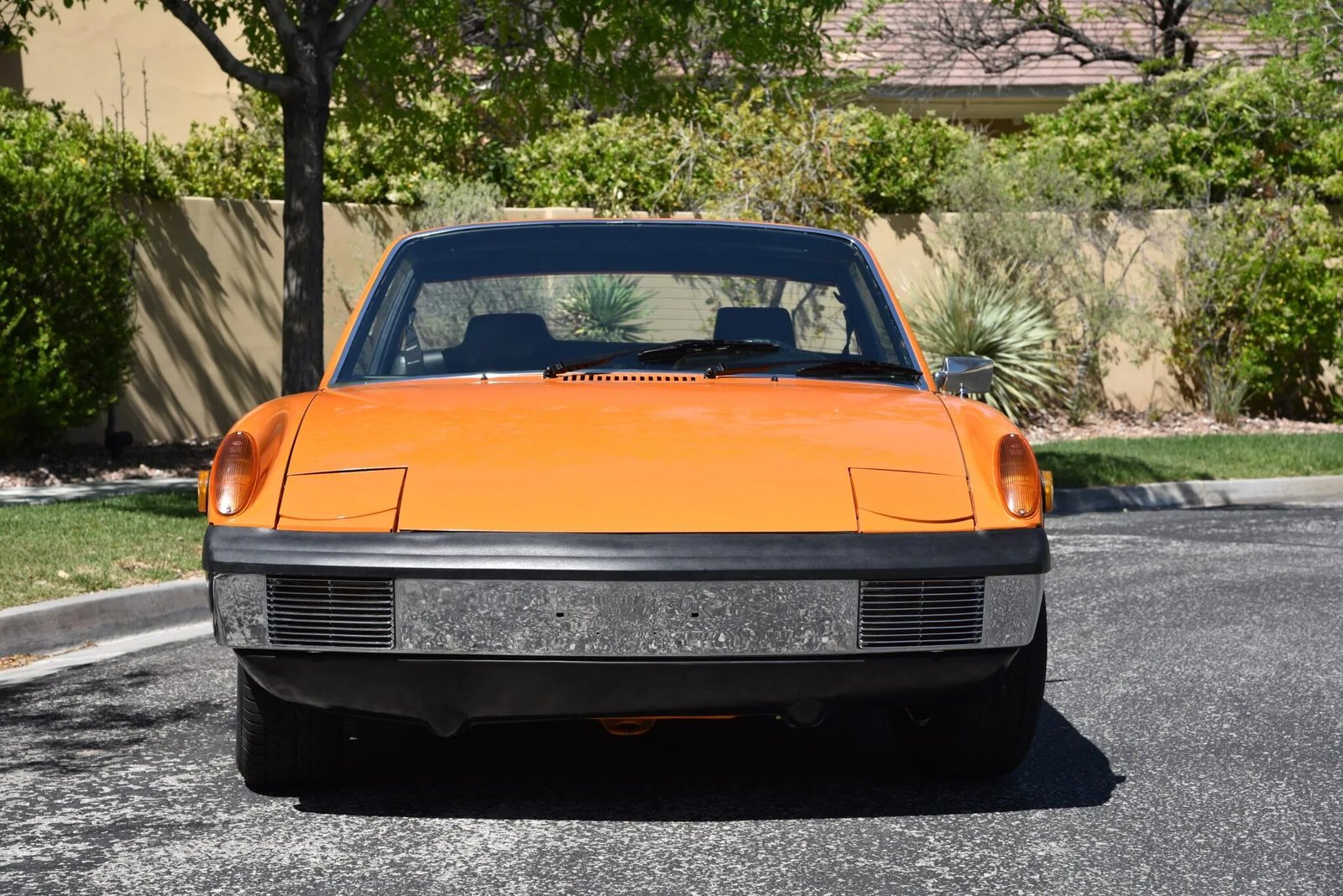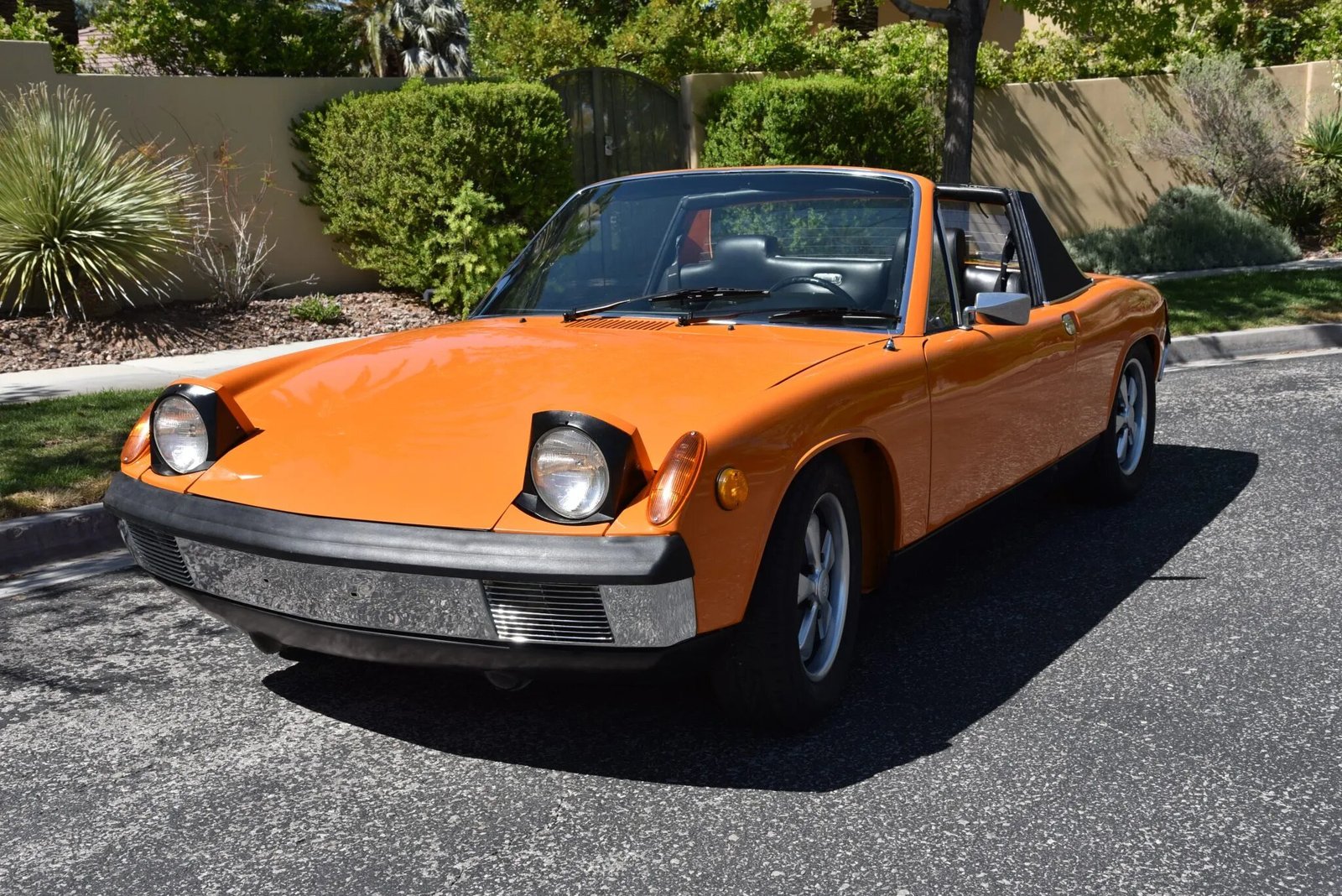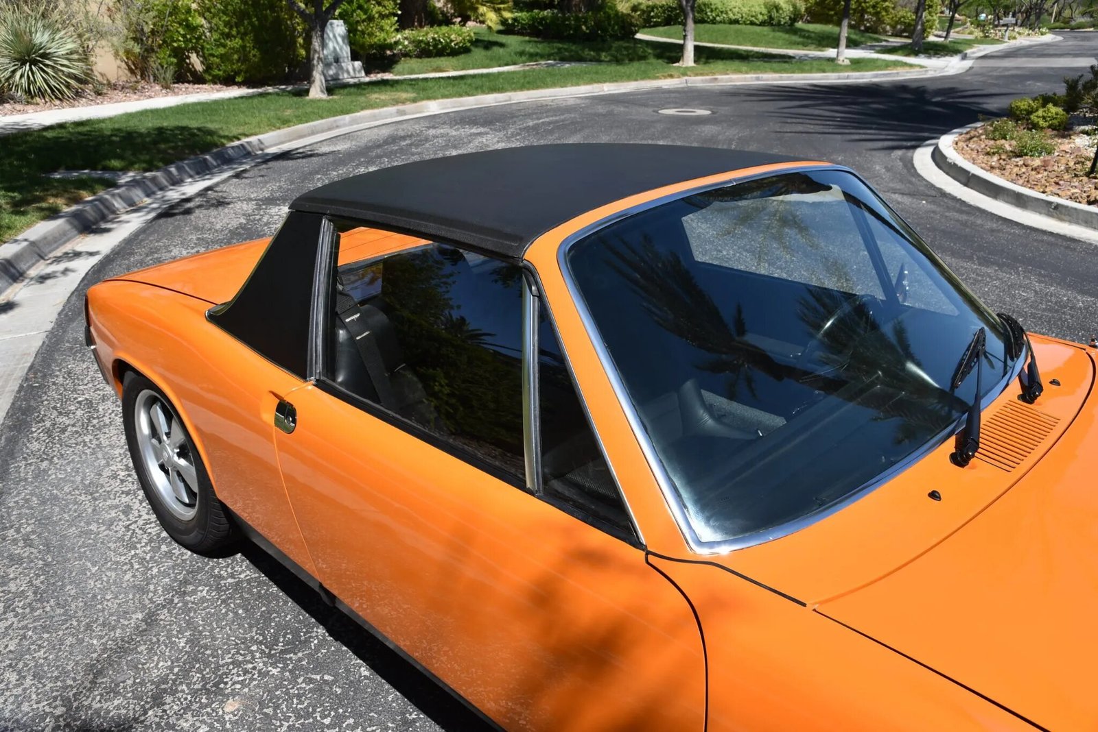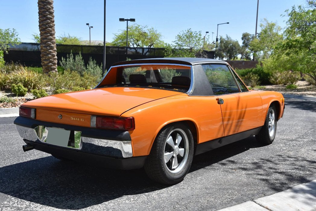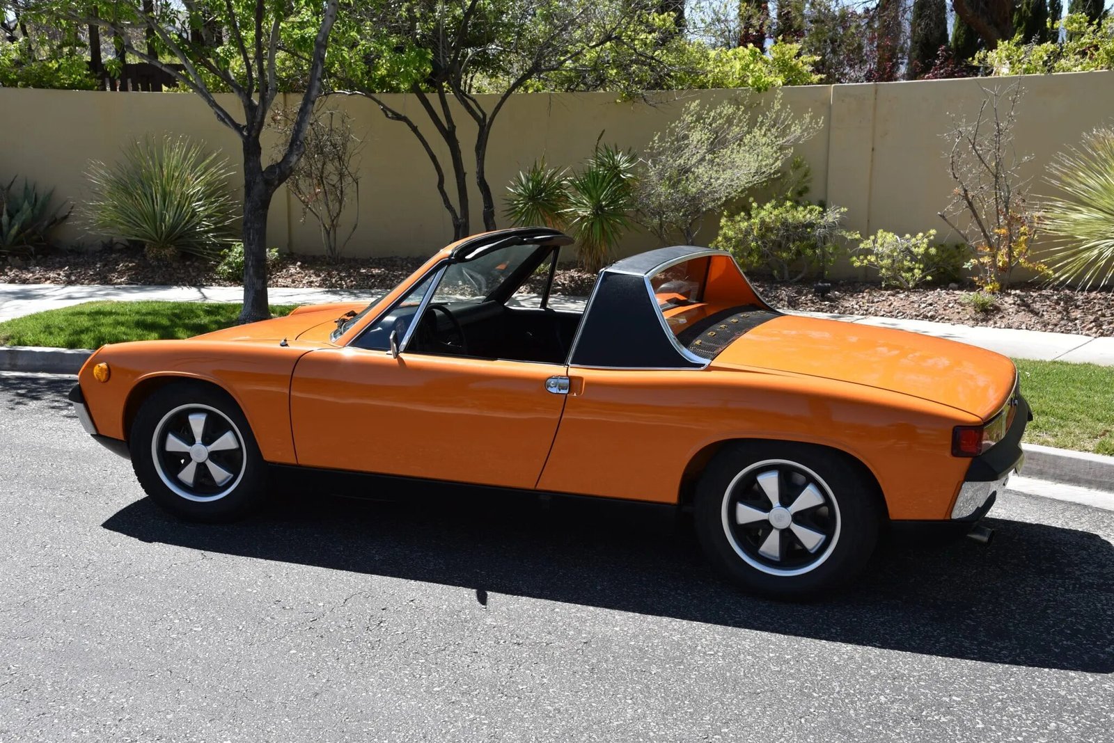 This 1970 Porsche 914-6 was mechanically overhauled between 2021 and 2024. The car is finished in Signal Orange over black leatherette and powered by a rebuilt 2.0-liter flat-six paired with a rebuilt five-speed manual gearbox. Equipment includes a removable roof panel, chrome bumpers, a Blaupunkt radio, Koni dampers, a Carrera oil pump, Carrera oil-fed chain tensioners, and Turbo valve covers.
