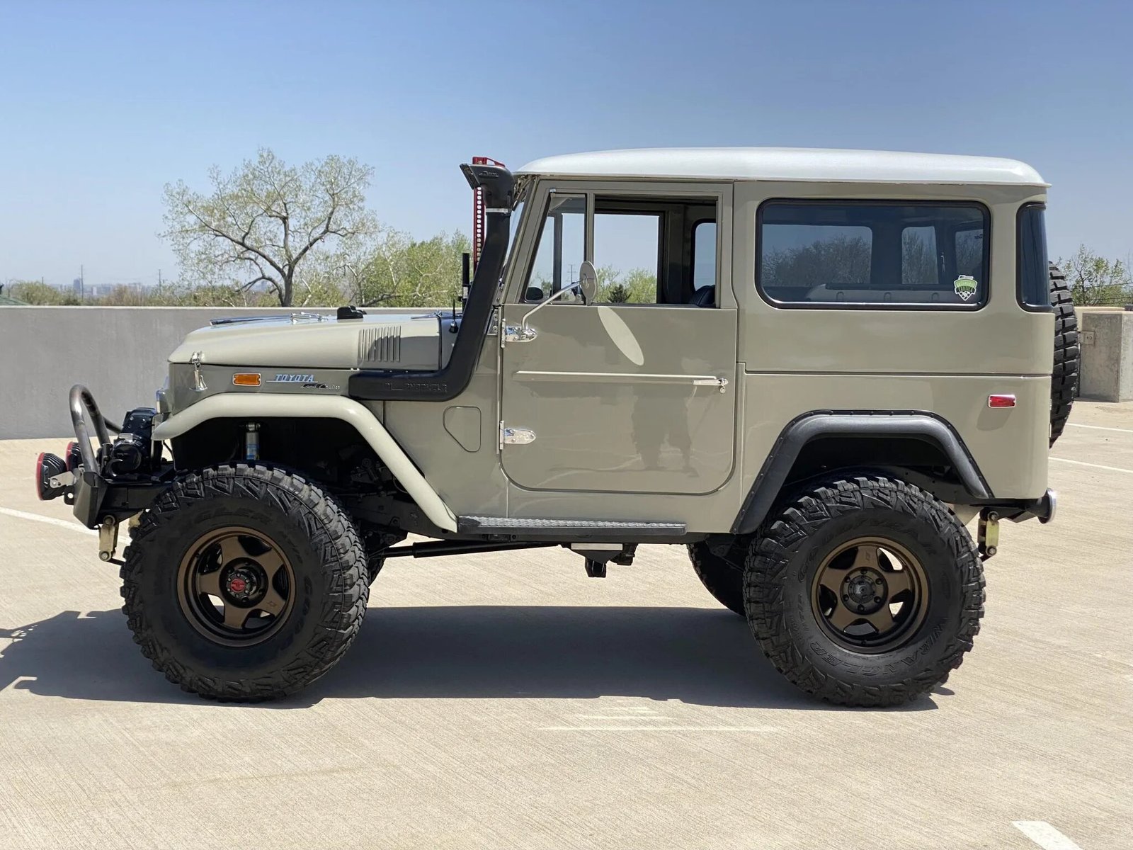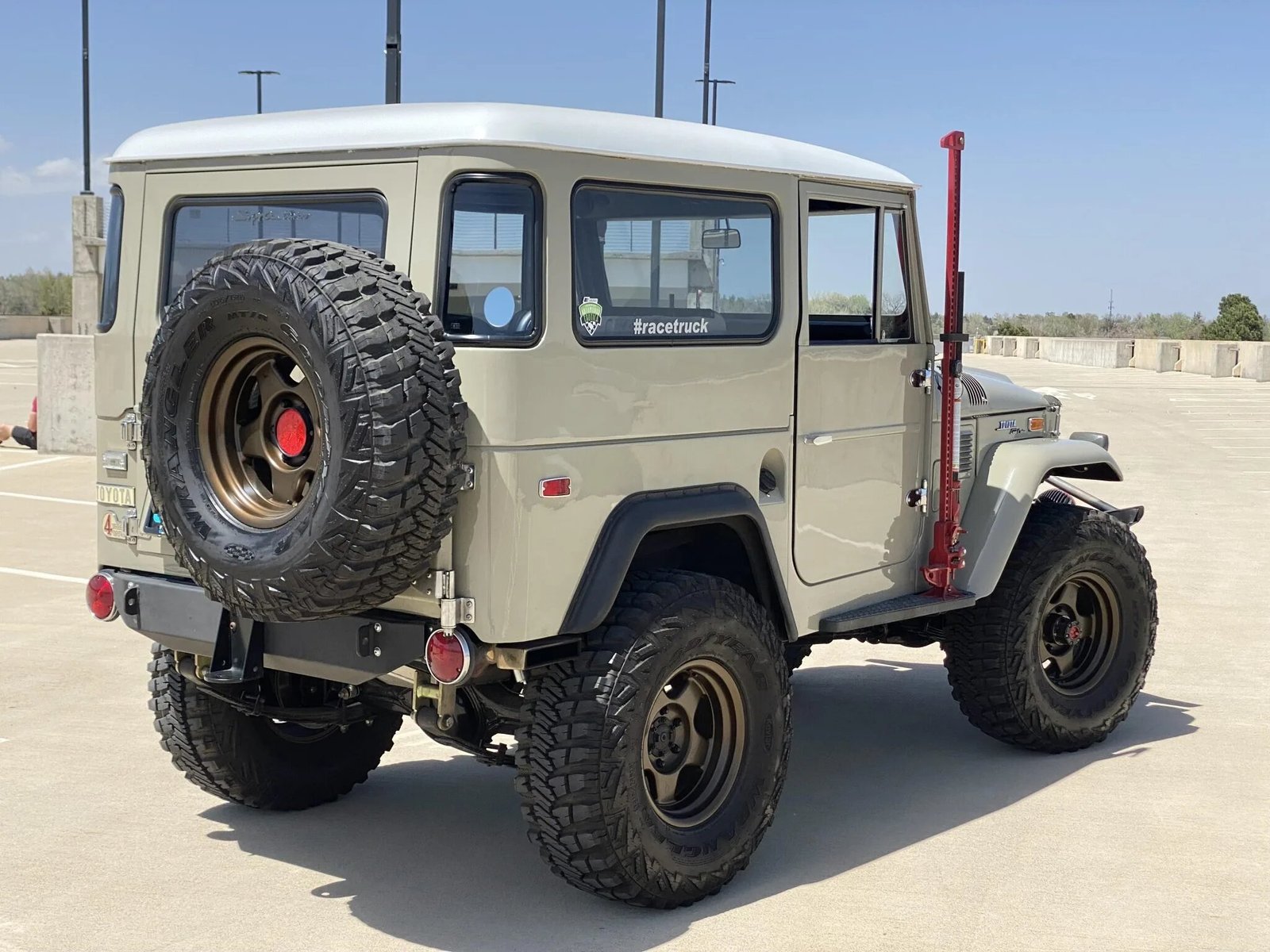 The suspension has been modified and features a lift kit with Bilstein dampers.