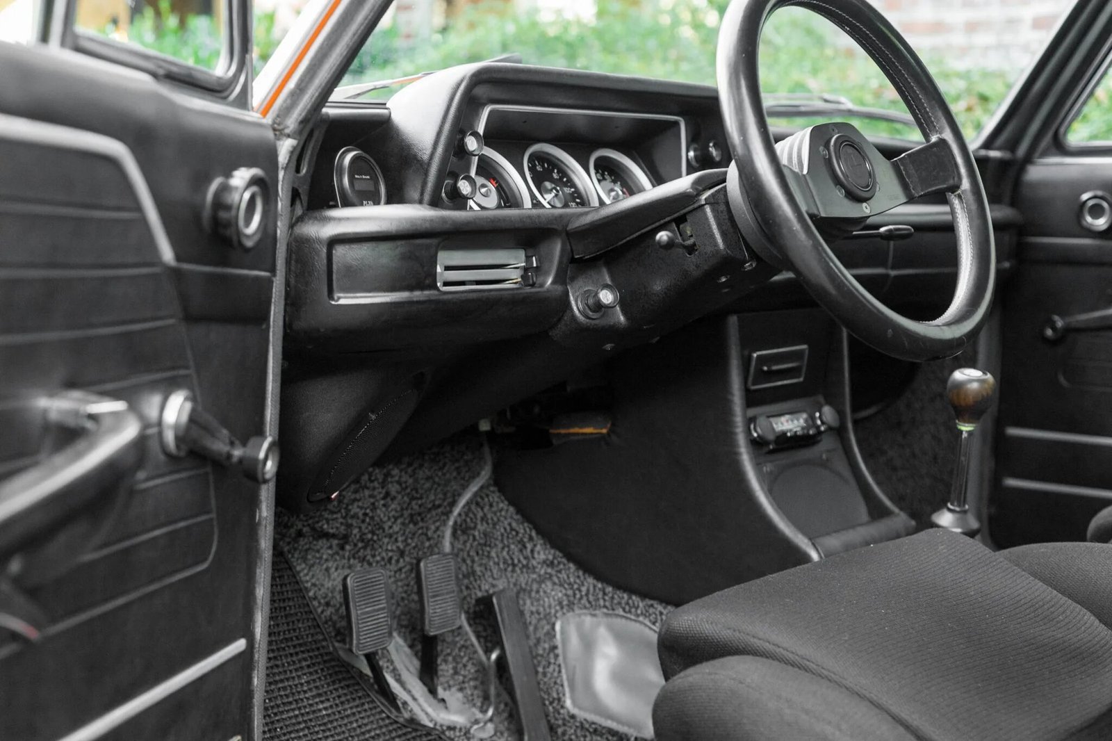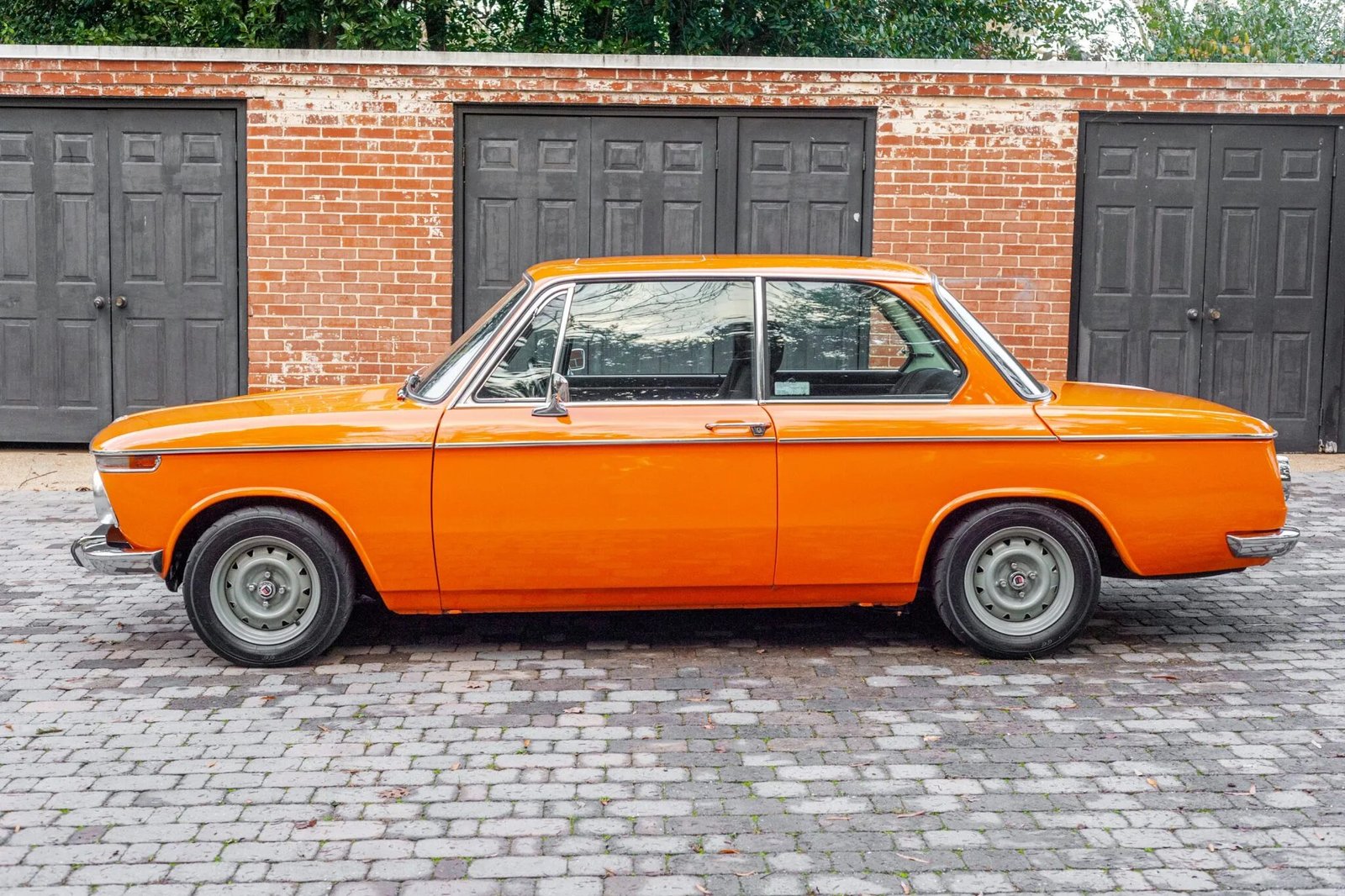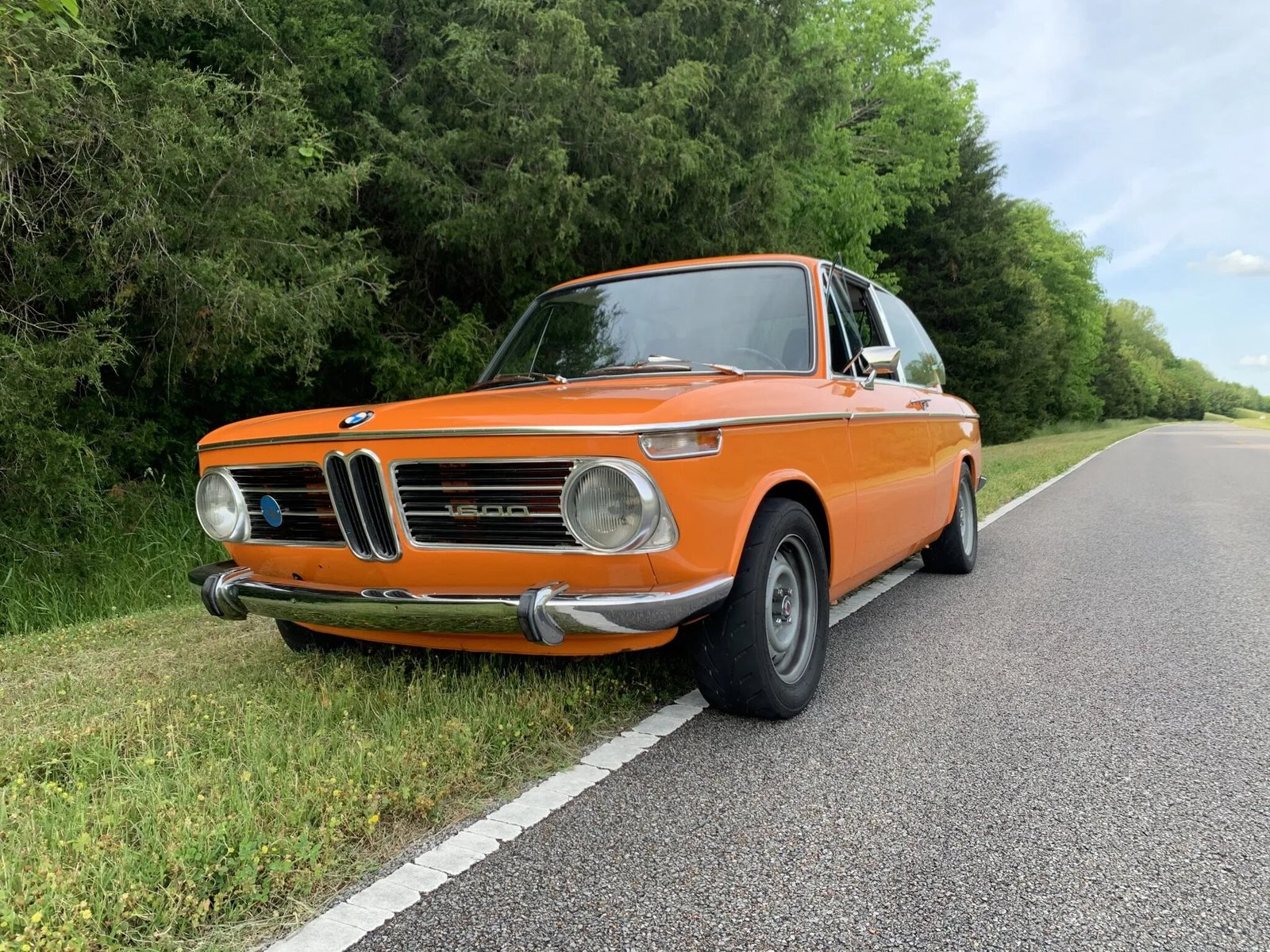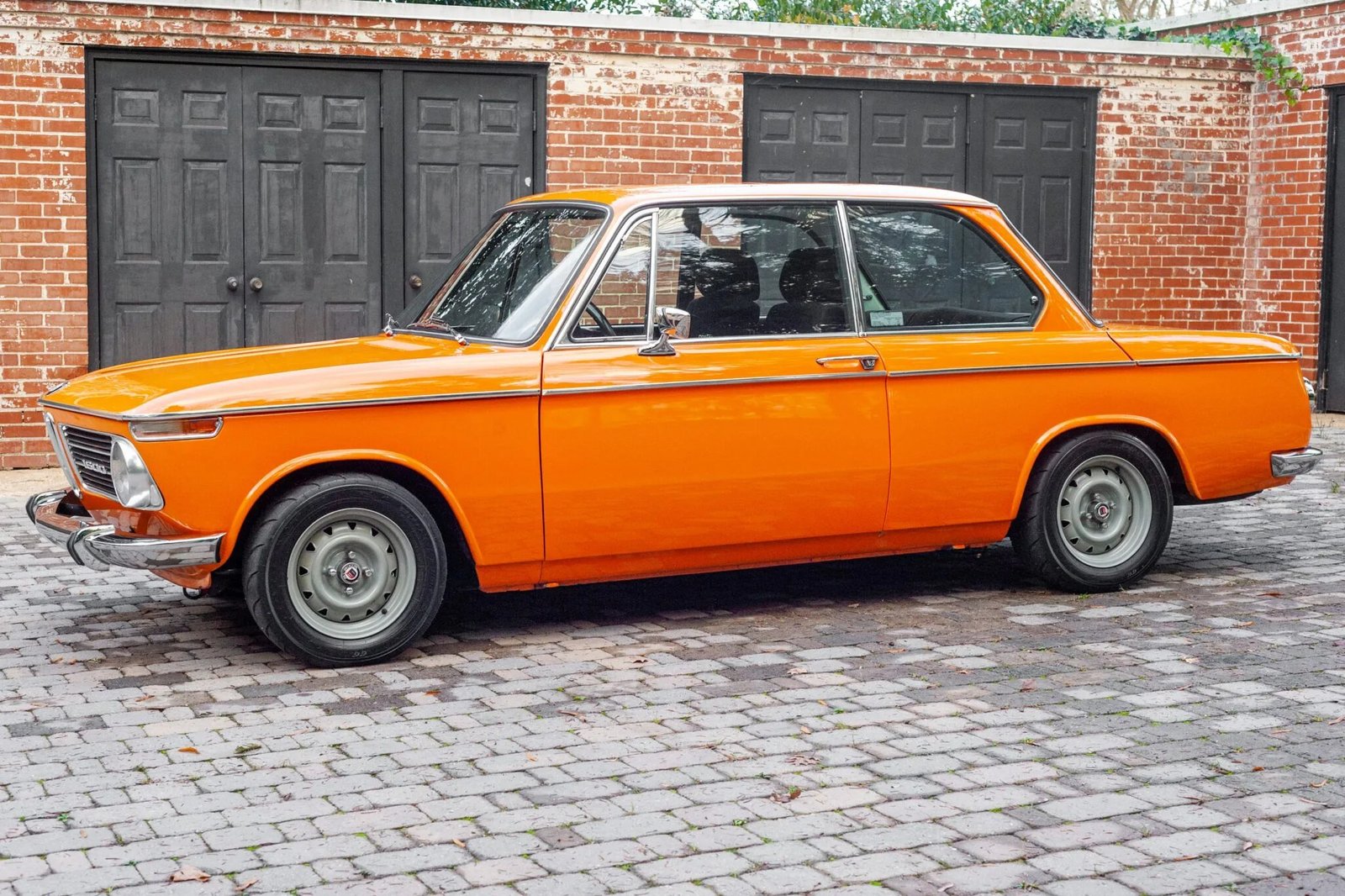 This 1971 BMW 1602 is finished in orange over a black interior and is powered by a 2.3-liter inline-four paired with a five-speed manual transmission.