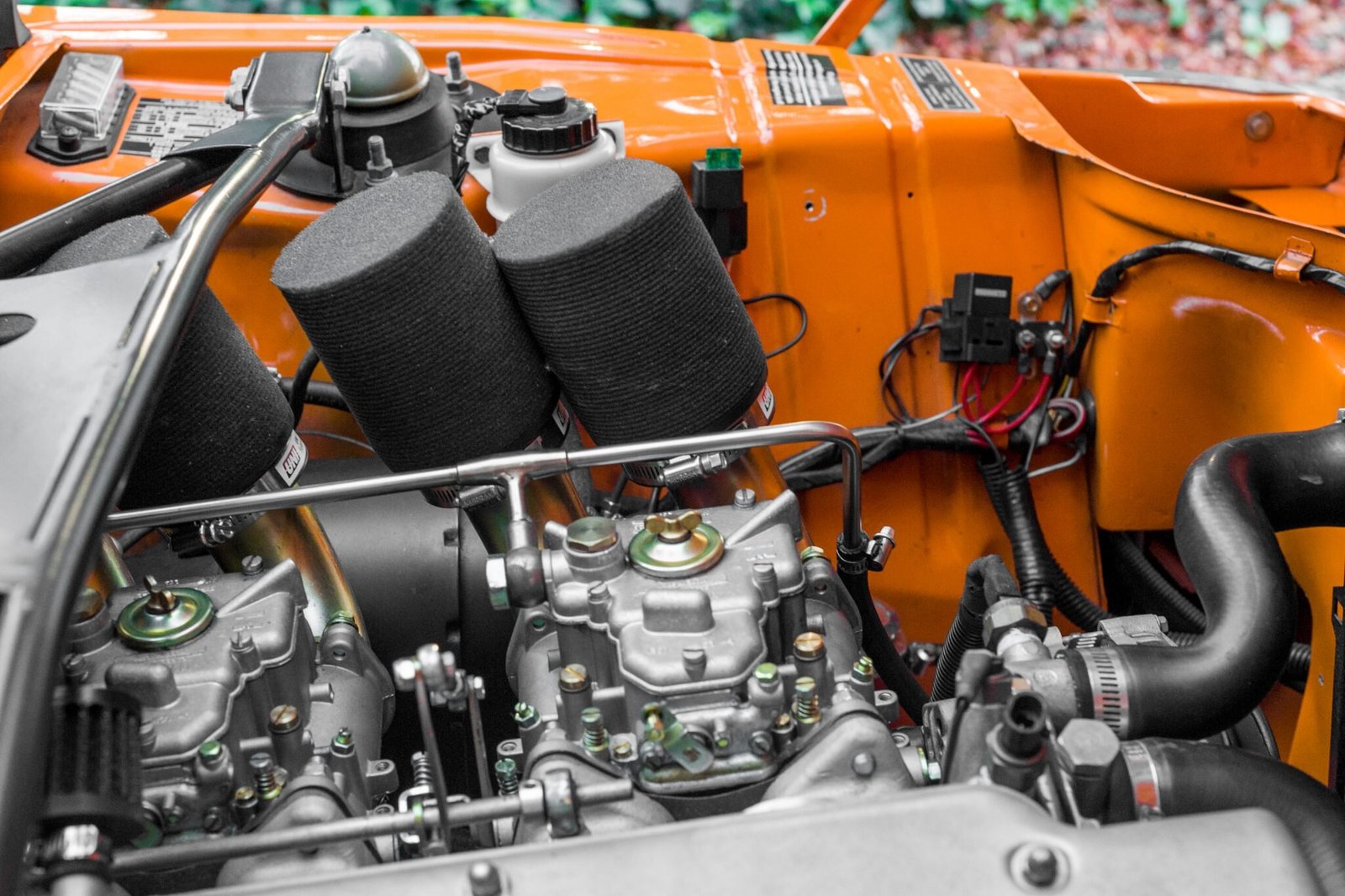Finished in Nevada Grey from the factory, the car received new front fenders and was refinished in orange in 2000, with the rocker trim removed and the holes filled in during the process.