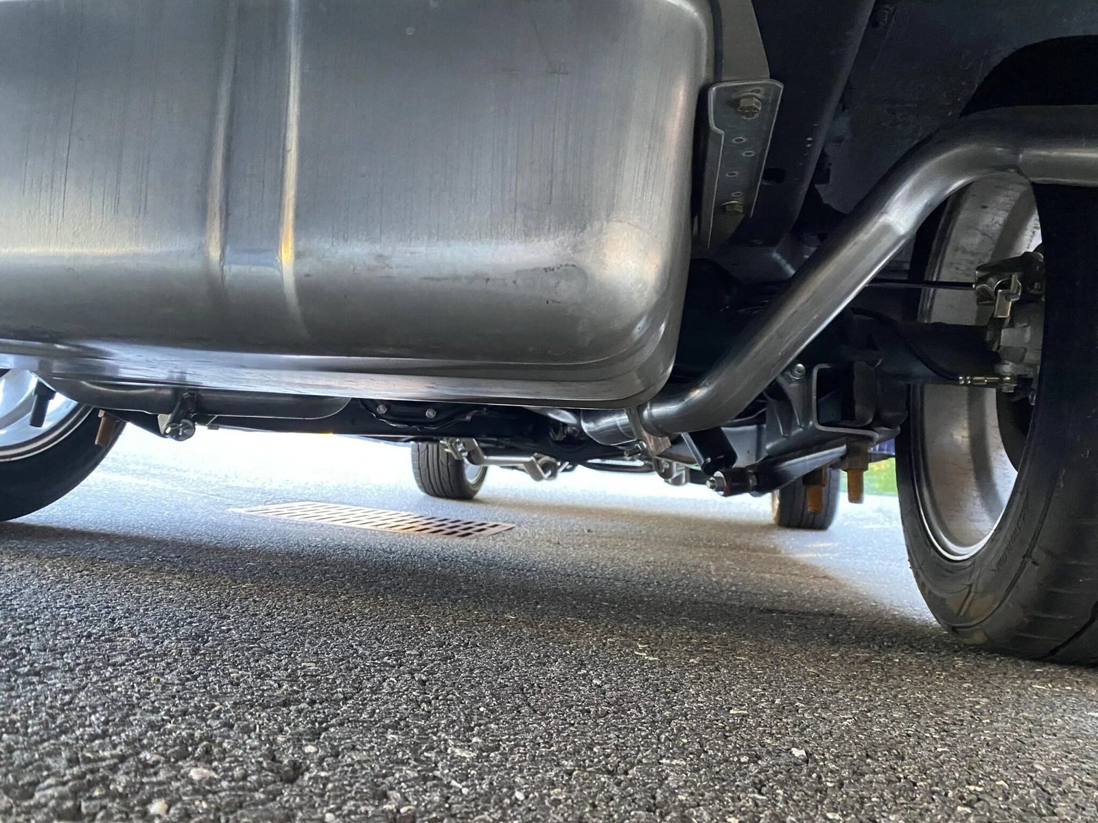 The truck is equipped with power steering, and the fuel tank was relocated to the underside of the rear of the cargo bed.