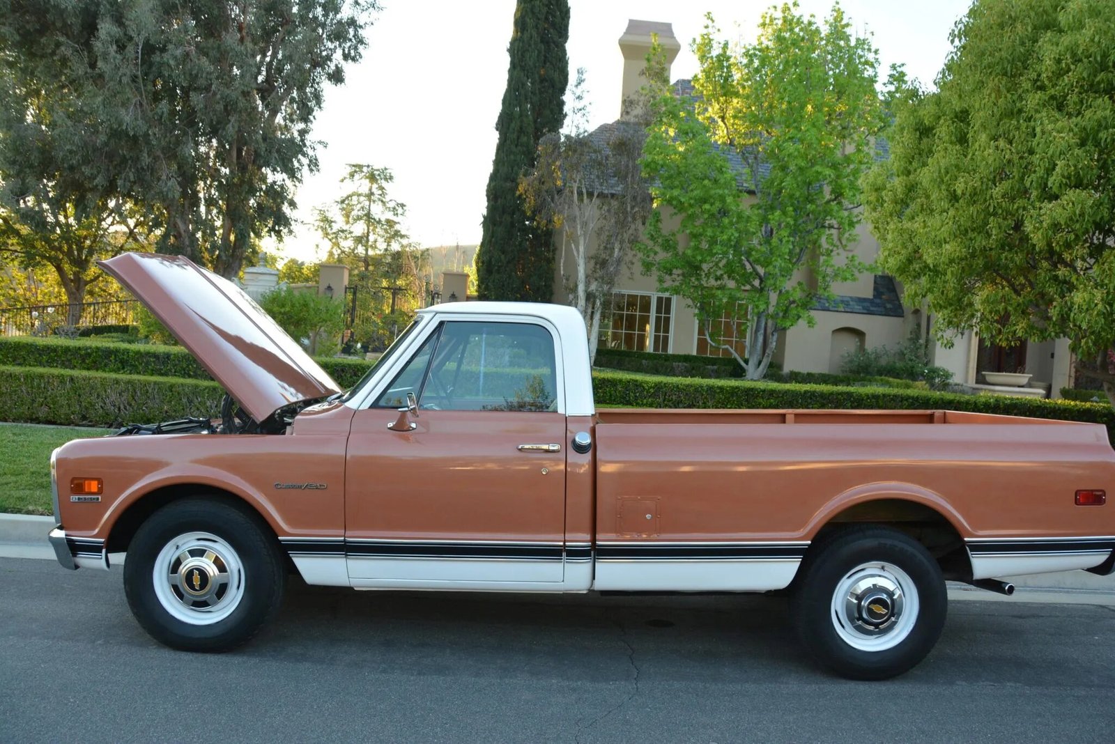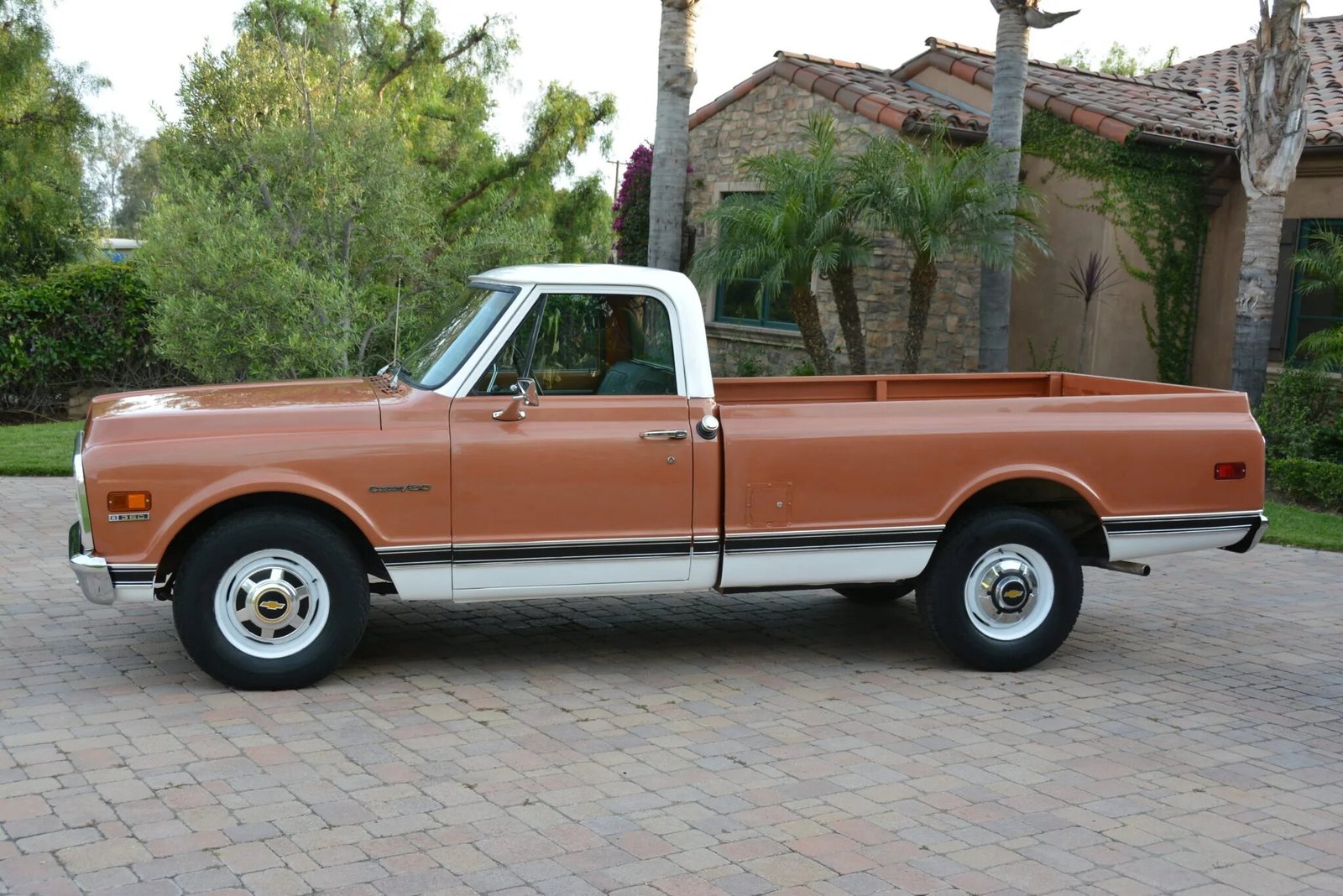 The truck is finished in bronze and white and is powered by a 350ci V8 paired with a Turbo Hydramatic automatic transmission.
