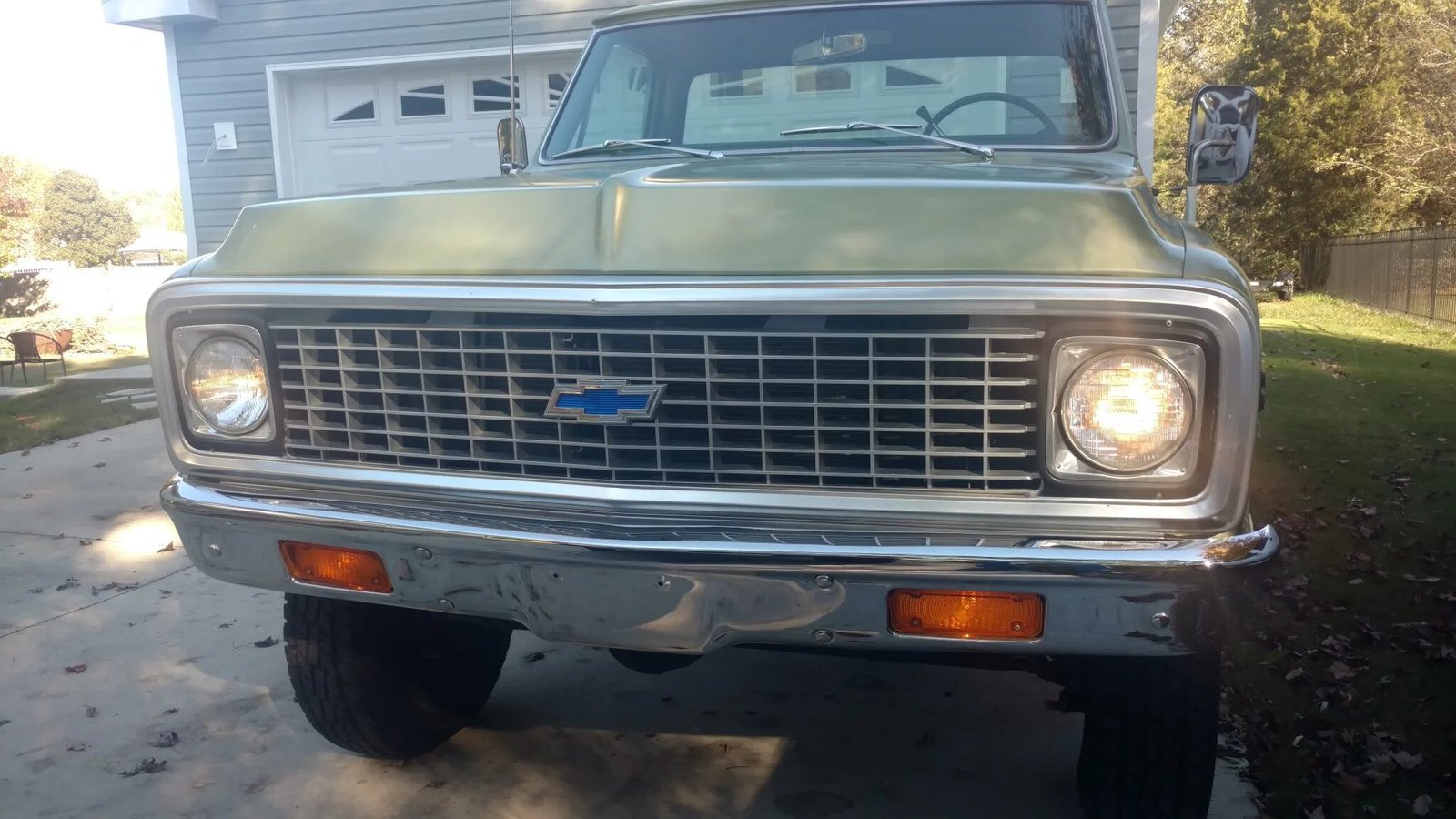 The truck is finished in Medium Olive and features a cargo lamp, chrome bumpers, towing mirrors, and chrome and rubber side moldings.
