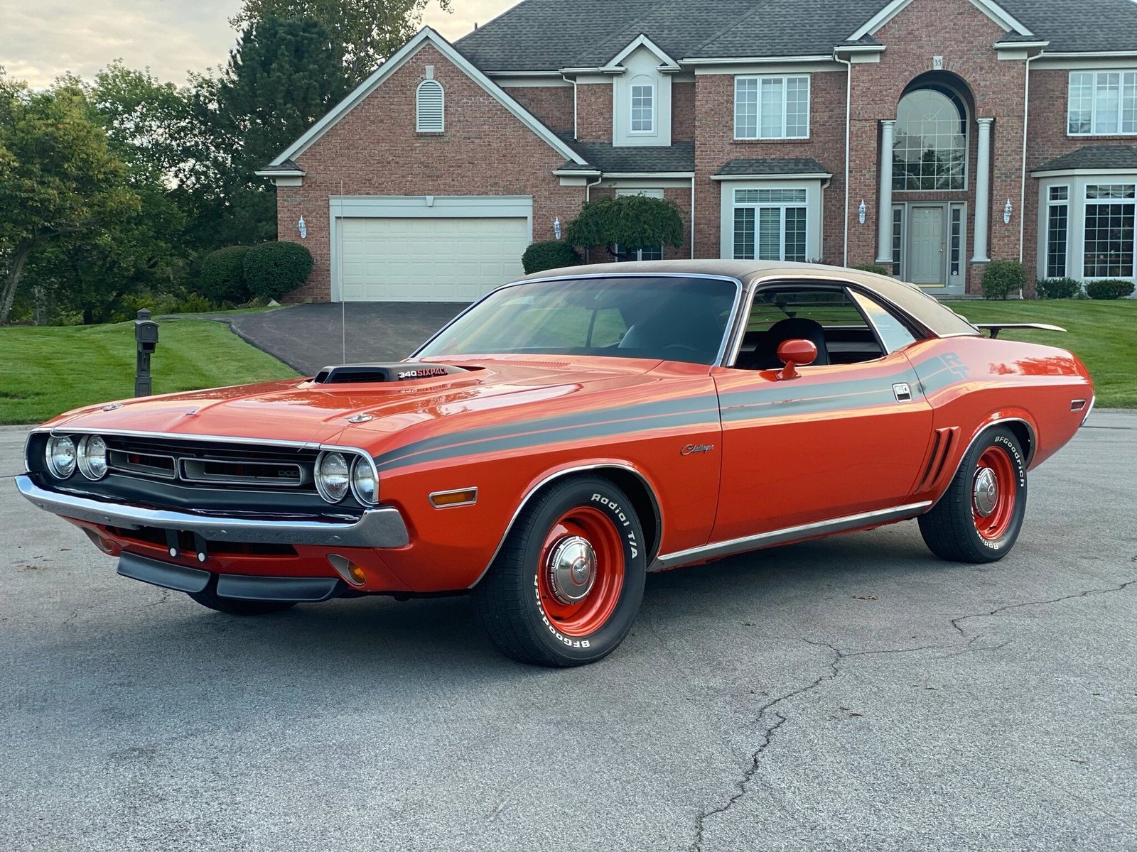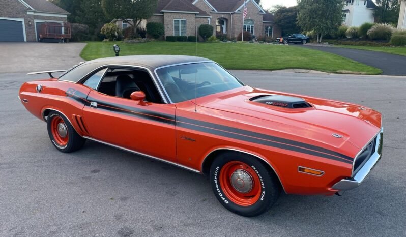 This 1971 Dodge Challenger R/T coupe is powered by a replacement 340ci V8 featuring a Six Pack–style induction system paired with a three-speed automatic transmission.