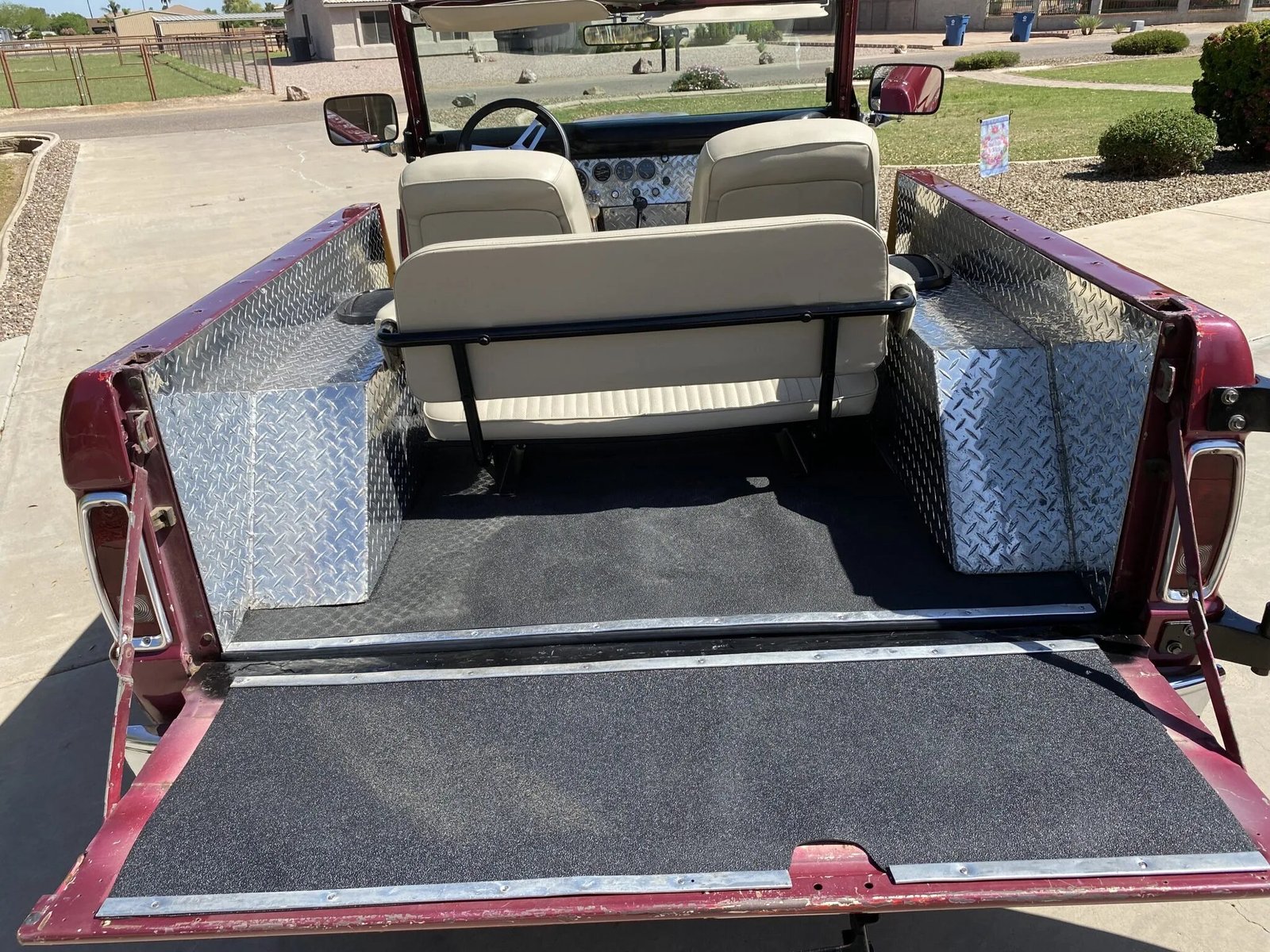 Seating is trimmed in Parchment vinyl, and diamond plating covers the dash, center console, and rear side panels.