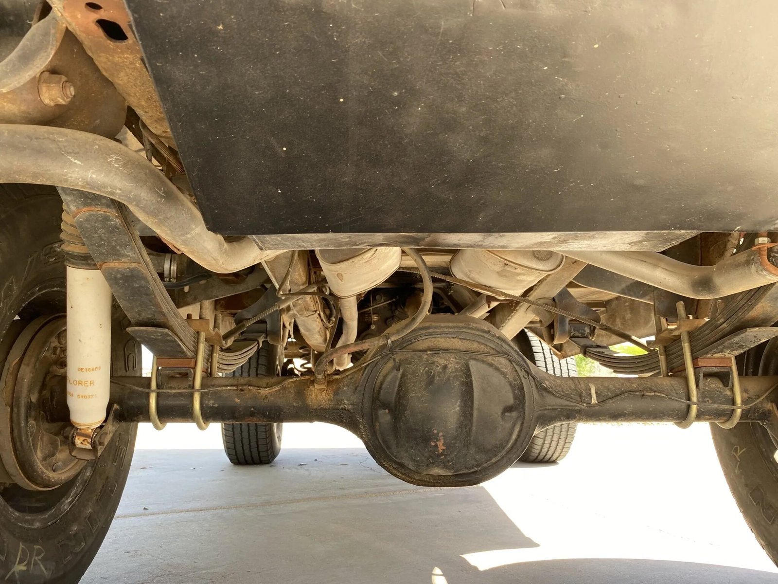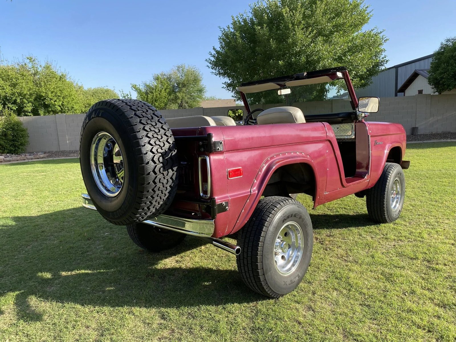 The polished 15″ wheels are mounted with 31×10.5″ Michelin LTX M/S tires, and a spare Definity Dakota tire measuring 33×12.5″ is mounted on the rear swing-out tire carrier.
