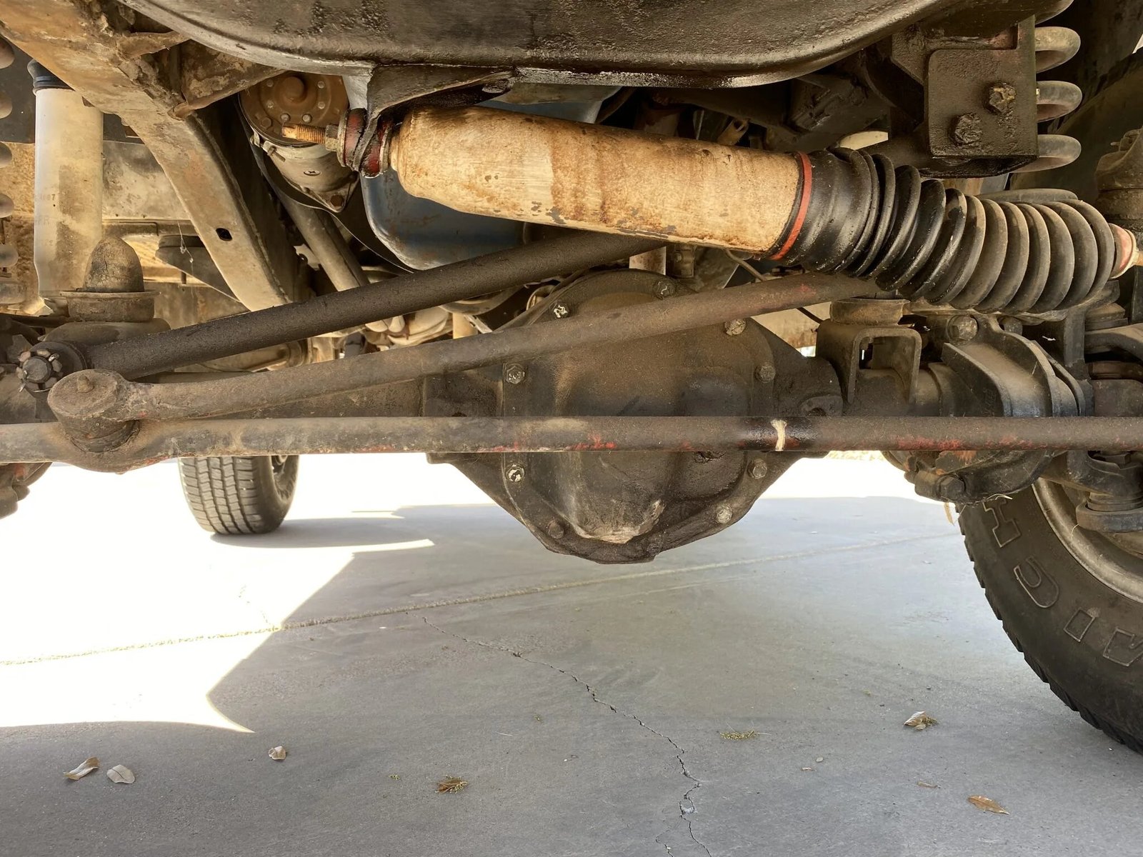 The truck is equipped with manually locking front hubs and drum brakes at all four corners.