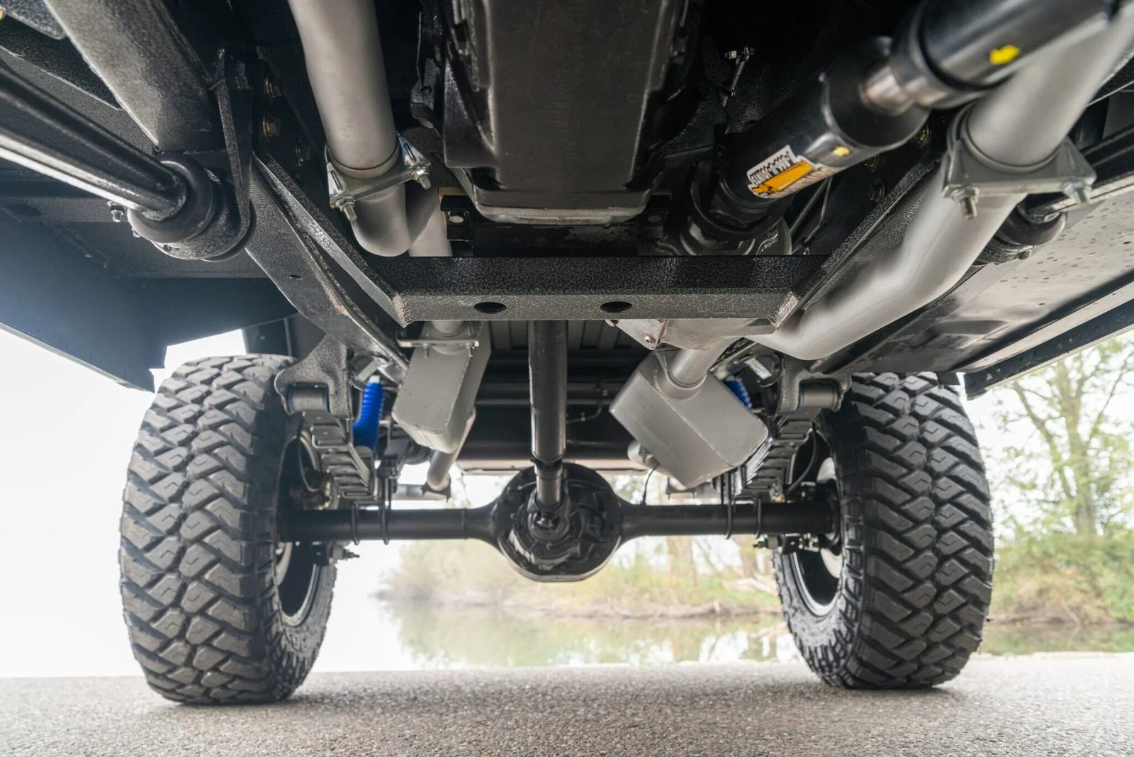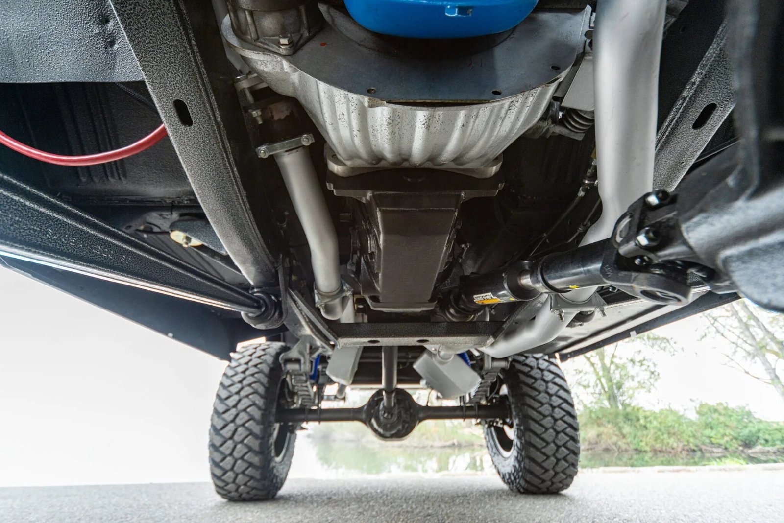 Power is sent to the rear or all four wheels through a NV4500 five-speed manual transmission, a twin-stick Dana 20 dual-range transfer case, a Dana 44 front axle, and a 9″ rear end with 3.50:1 gears.