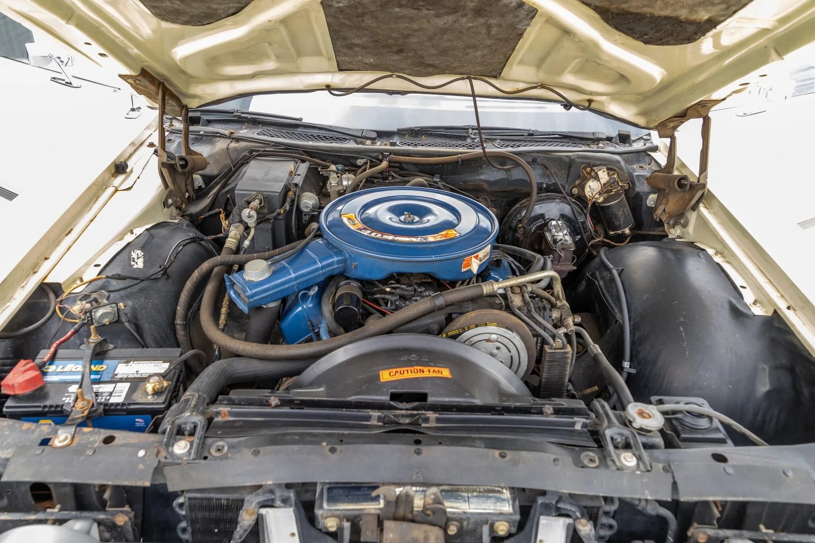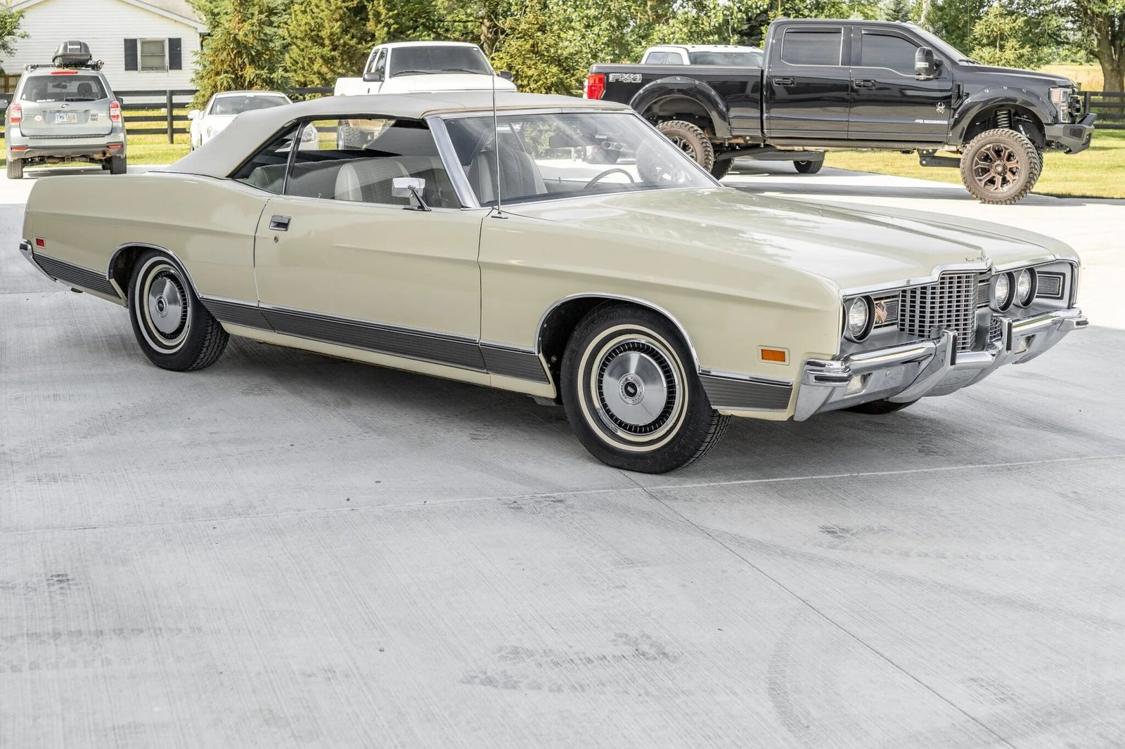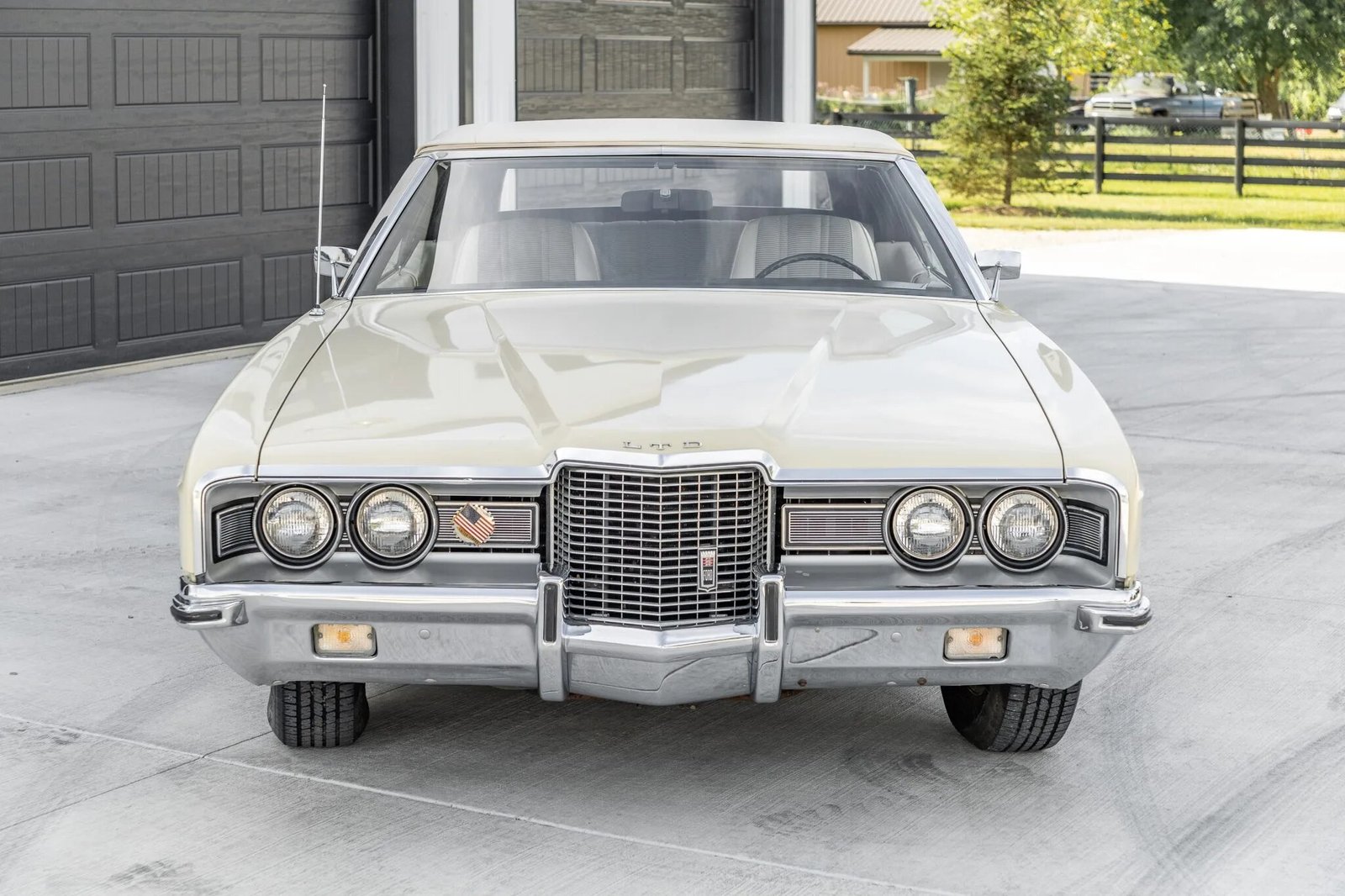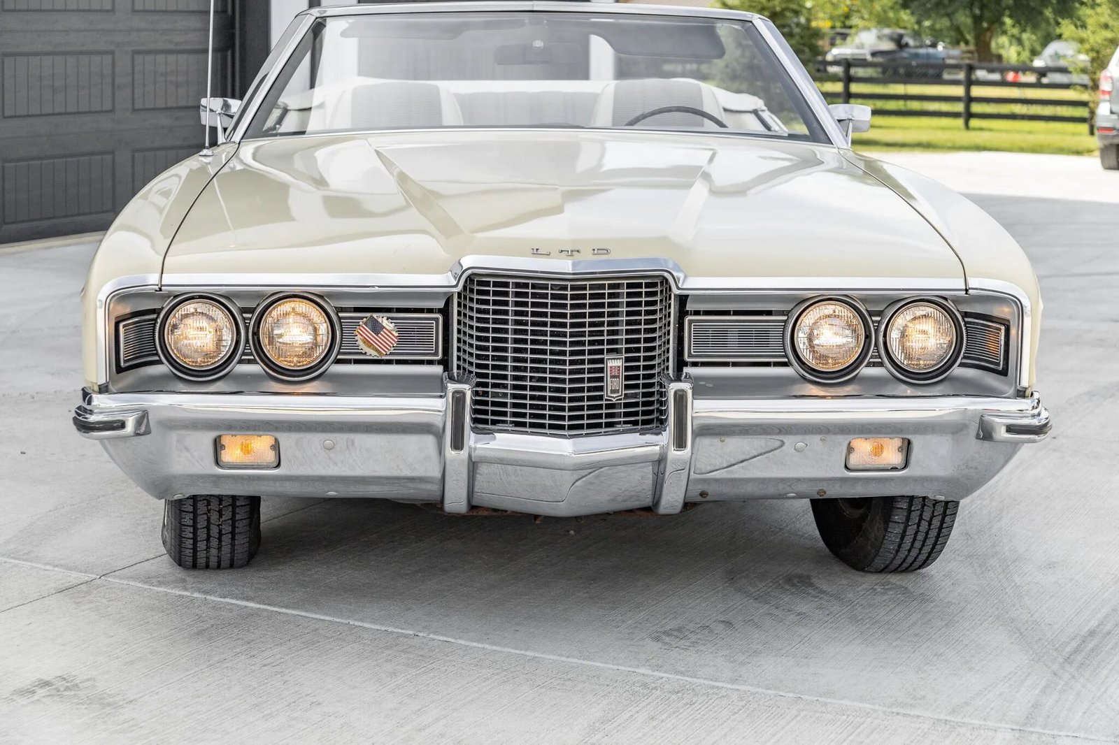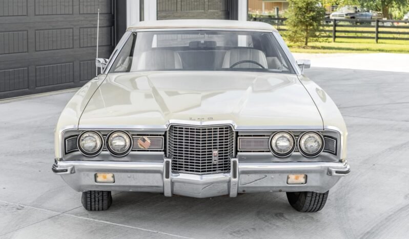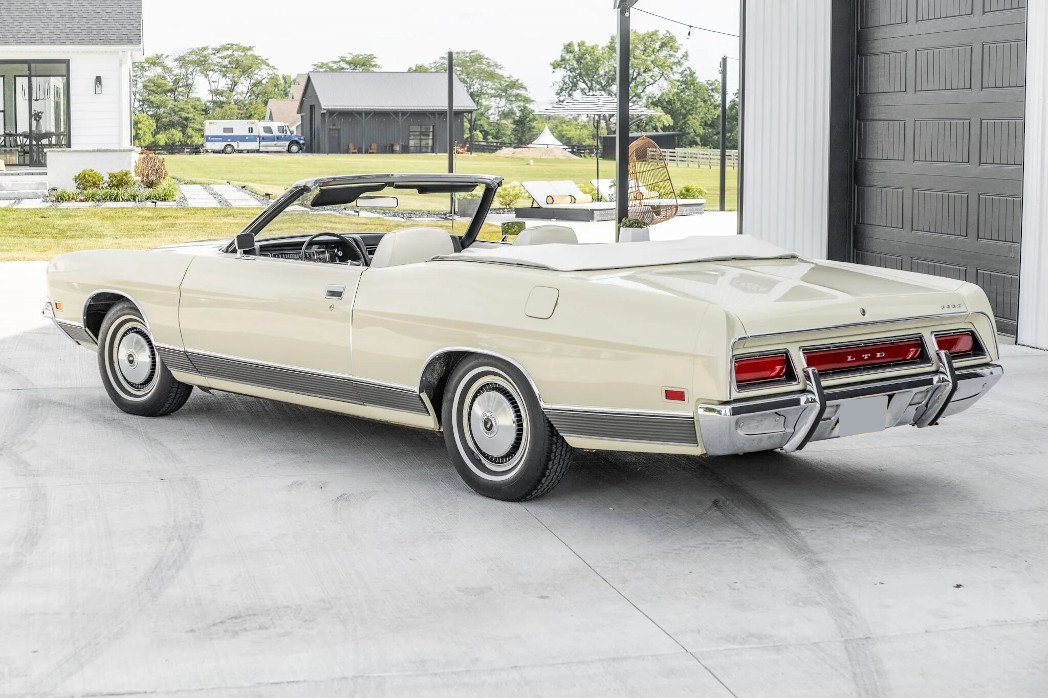 This 1971 Ford LTD convertible is powered by a 400ci V8 paired with a three-speed automatic transmission and was equipped from the factory with air conditioning, power-assisted steering and front disc brakes, and a Philco AM radio.