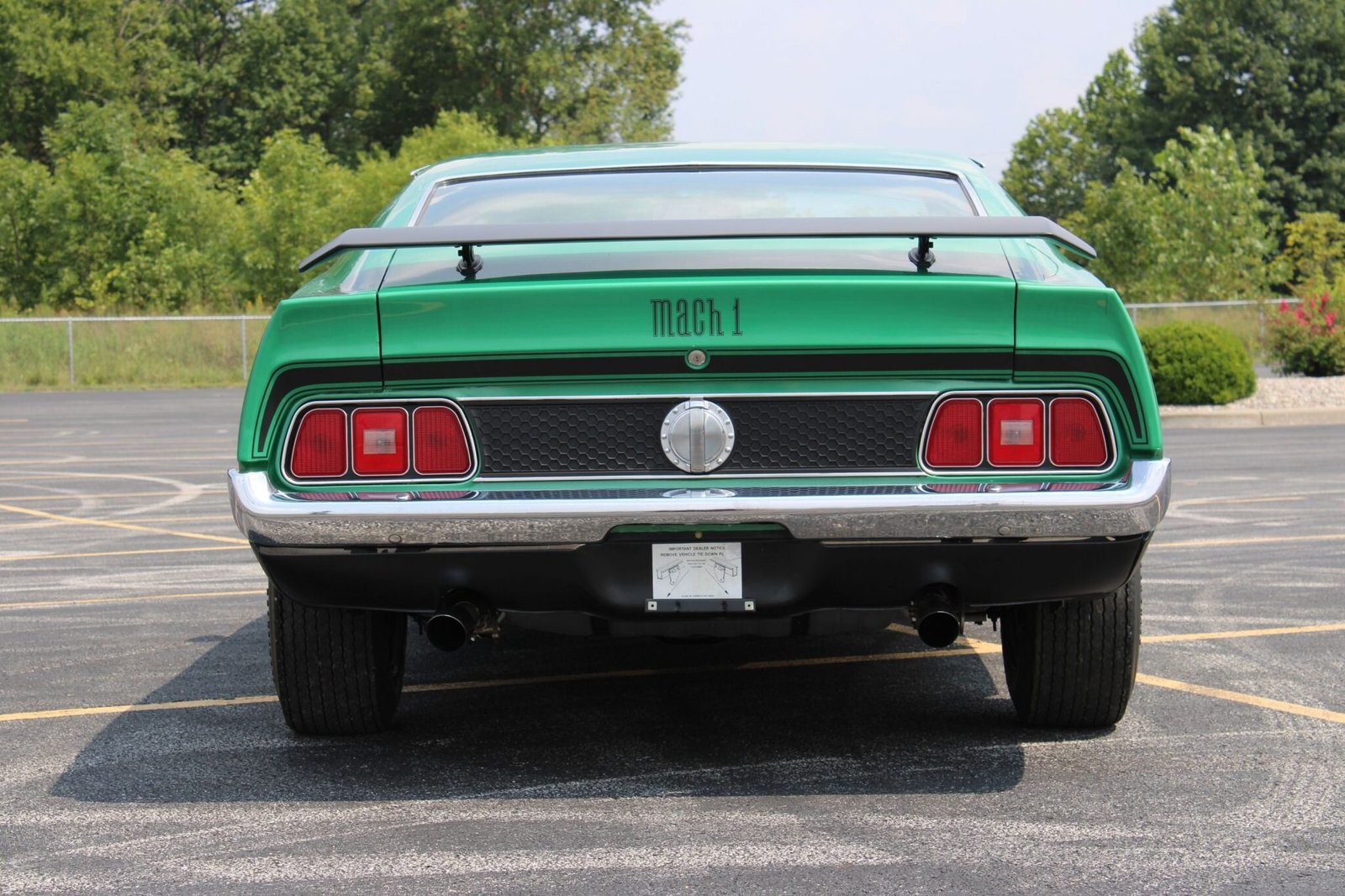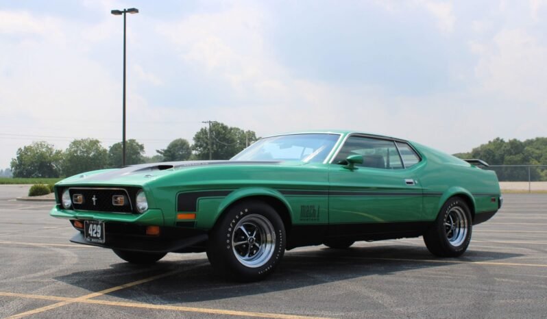 The car is finished in Grabber Green Metallic over a black Mach 1 Sports interior and is powered by a 429ci Super Cobra Jet engine paired with a three-speed automatic transmission and a Detroit Locker limited-slip differential.