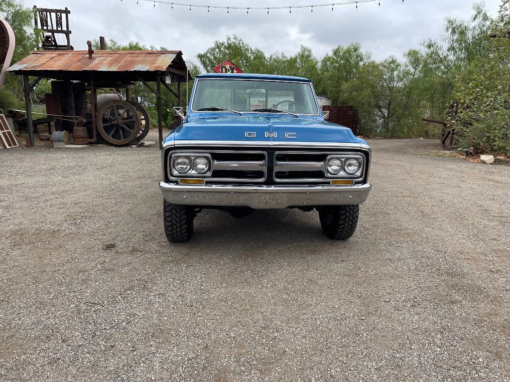 This 1971 GMC K2500 Custom is a 3/4-ton pickup that is powered by a replacement 350ci V8 paired with a three-speed automatic transmission and a replacement dual-range transfer case.