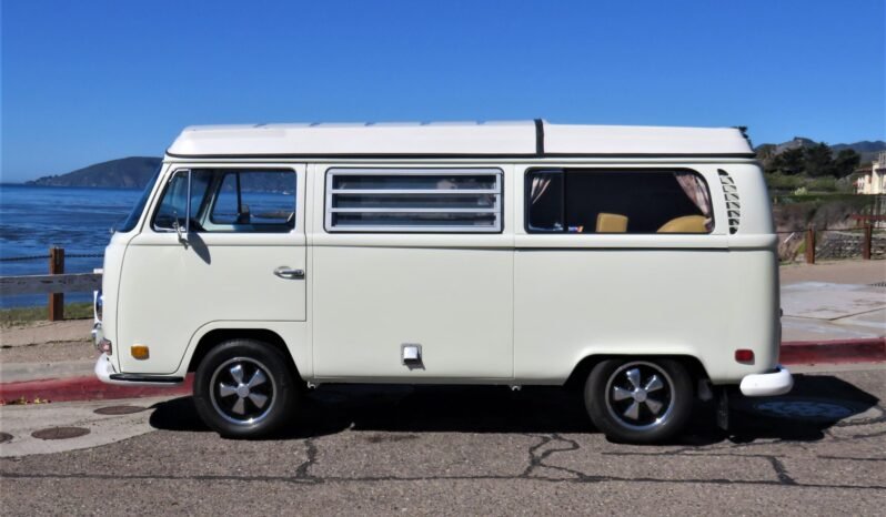 The body was refinished in Pastel White during the refurbishment completed in 2017 and features a Cloud White camper top, white bumpers, a side doorstep, a Catalina retractable awning, and Jalousie-style bay windows on each side.