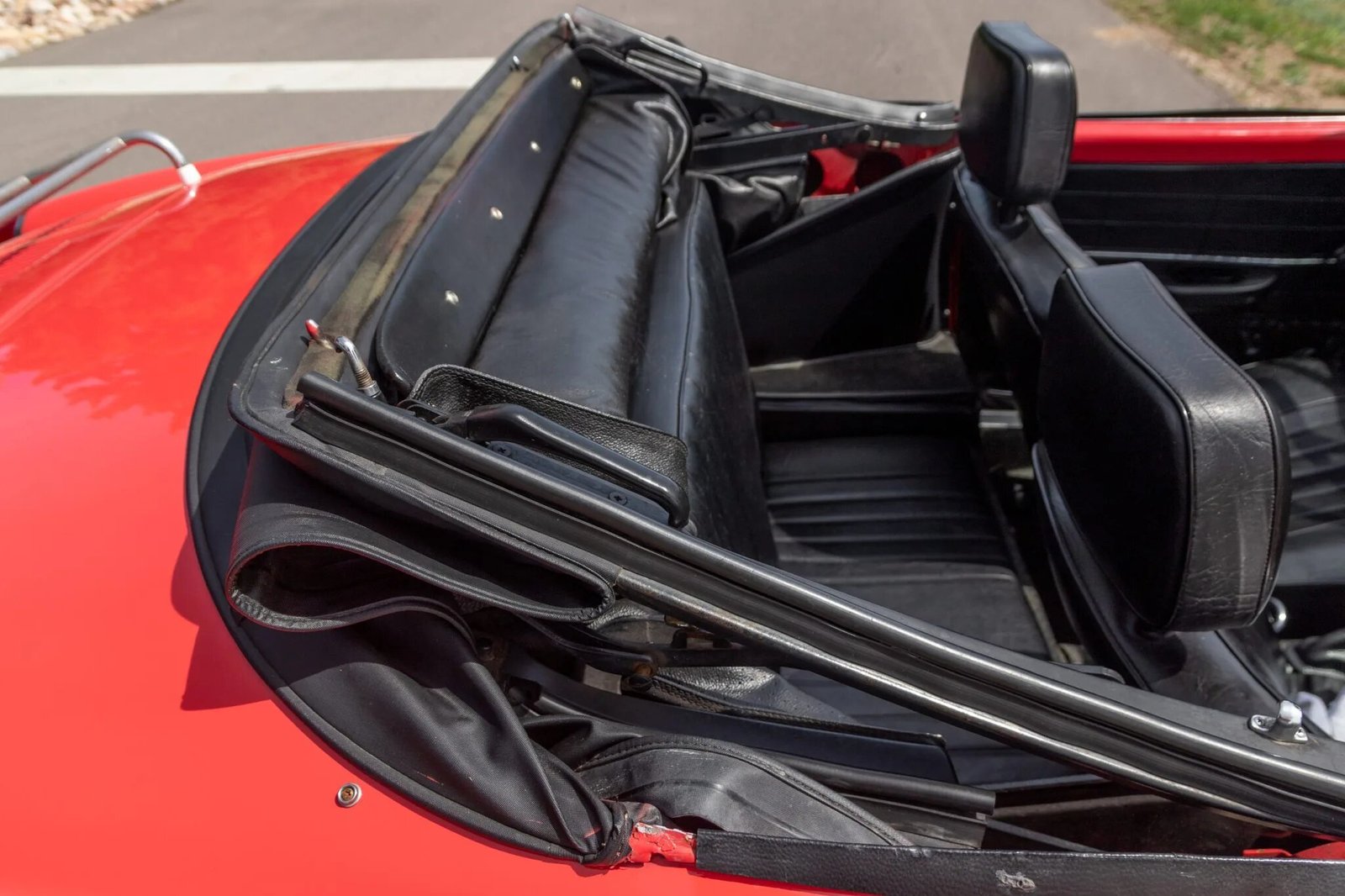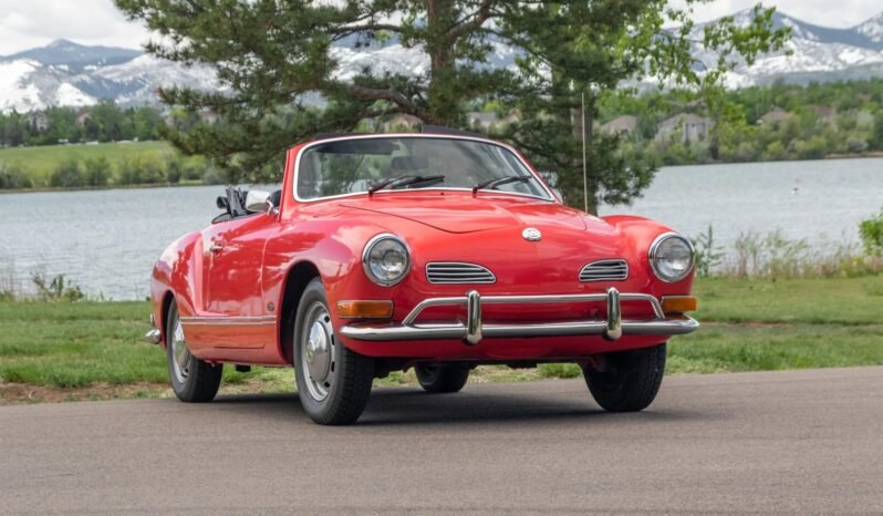 Power is provided by a 1.5-liter flat-four paired with a four-speed manual transaxle and additional equipment includes a black soft top, a luggage rack, chrome bumpers, 15″ wheels with chrome hubcaps, and a factory push-button AM/FM radio.
