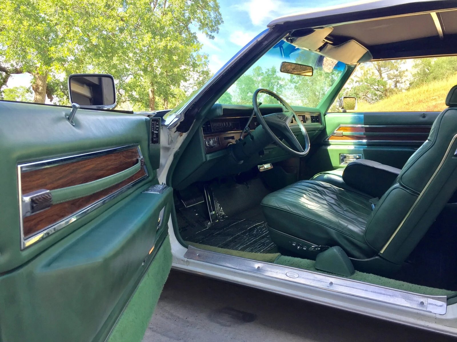 The interior features Dark Jade green leather seating surfaces along with a matching dashboard, door panels, and carpets.