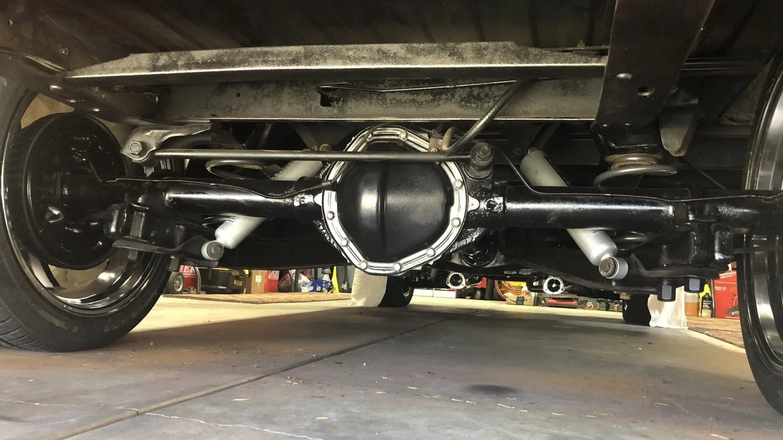 Power is routed to the rear wheels via a rebuilt TH400 automatic transmission, a 12-bolt rear end with 3.73:1 gears, and replacement axles and wheel bearings.