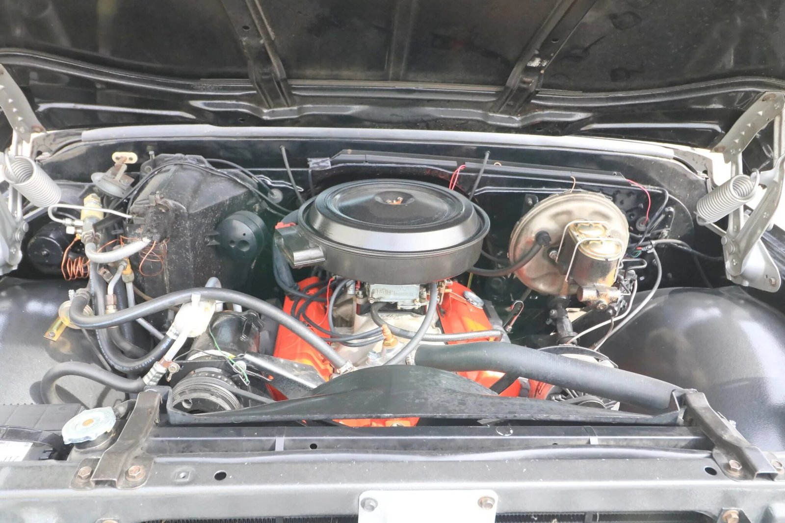 The replacement 350ci V8 is topped by a Holley carburetor and an Edelbrock intake manifold.