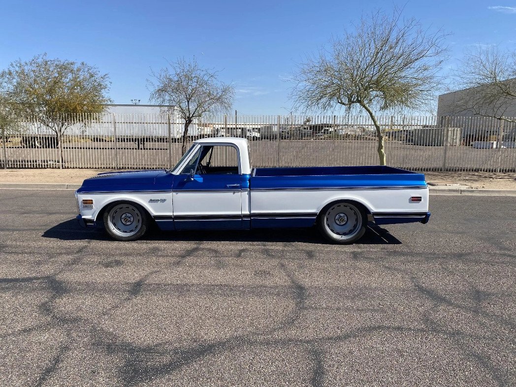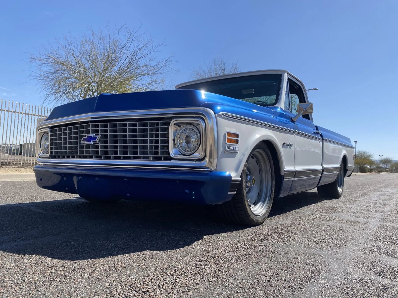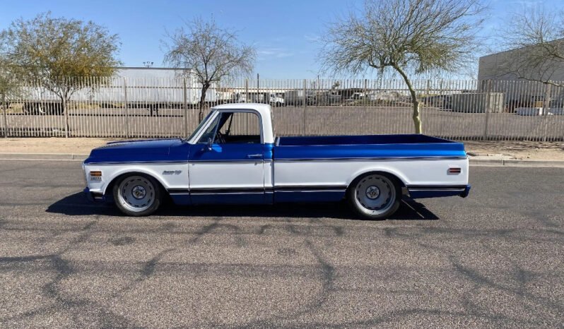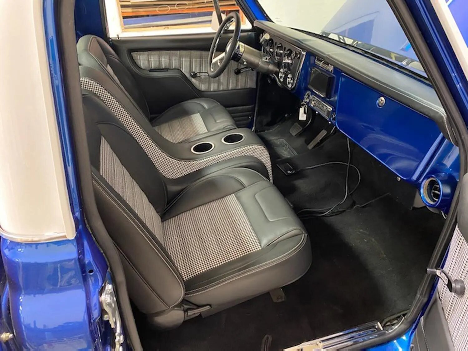 The truck is finished in metallic blue and white over a black interior and is powered by a supercharged 468ci V8 paired with a four-speed automatic transmission.