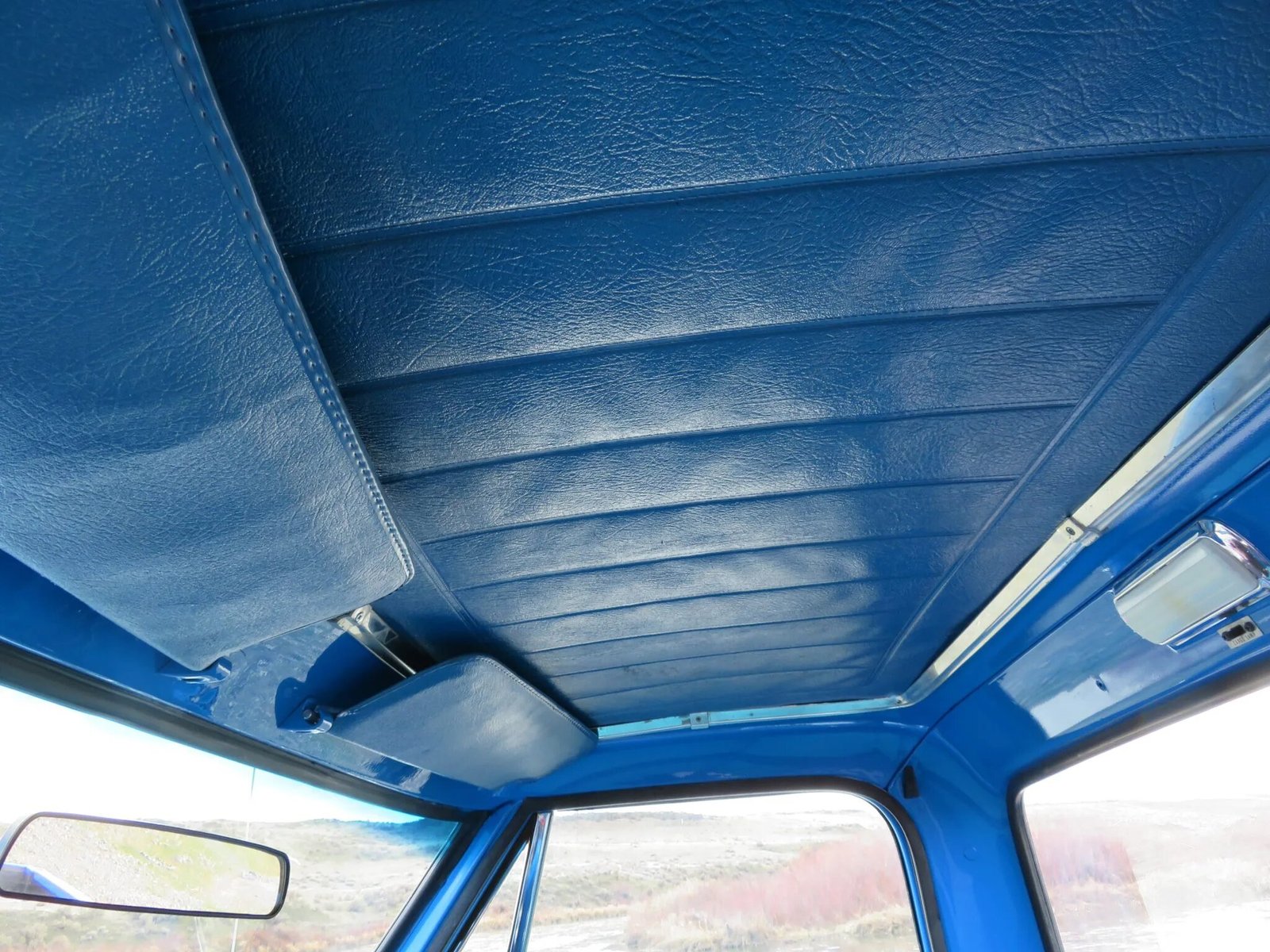 Equipment includes replacement blue carpet, chrome trim, blue door panels and headliner, and air conditioning that has been converted to use R134a.
