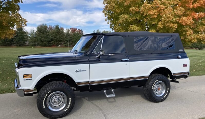 Finished in two tone black and white over a black vinyl interior, the truck is powered by a 350ci V8 mated to a four-speed manual transmission and a dual-range transfer case.