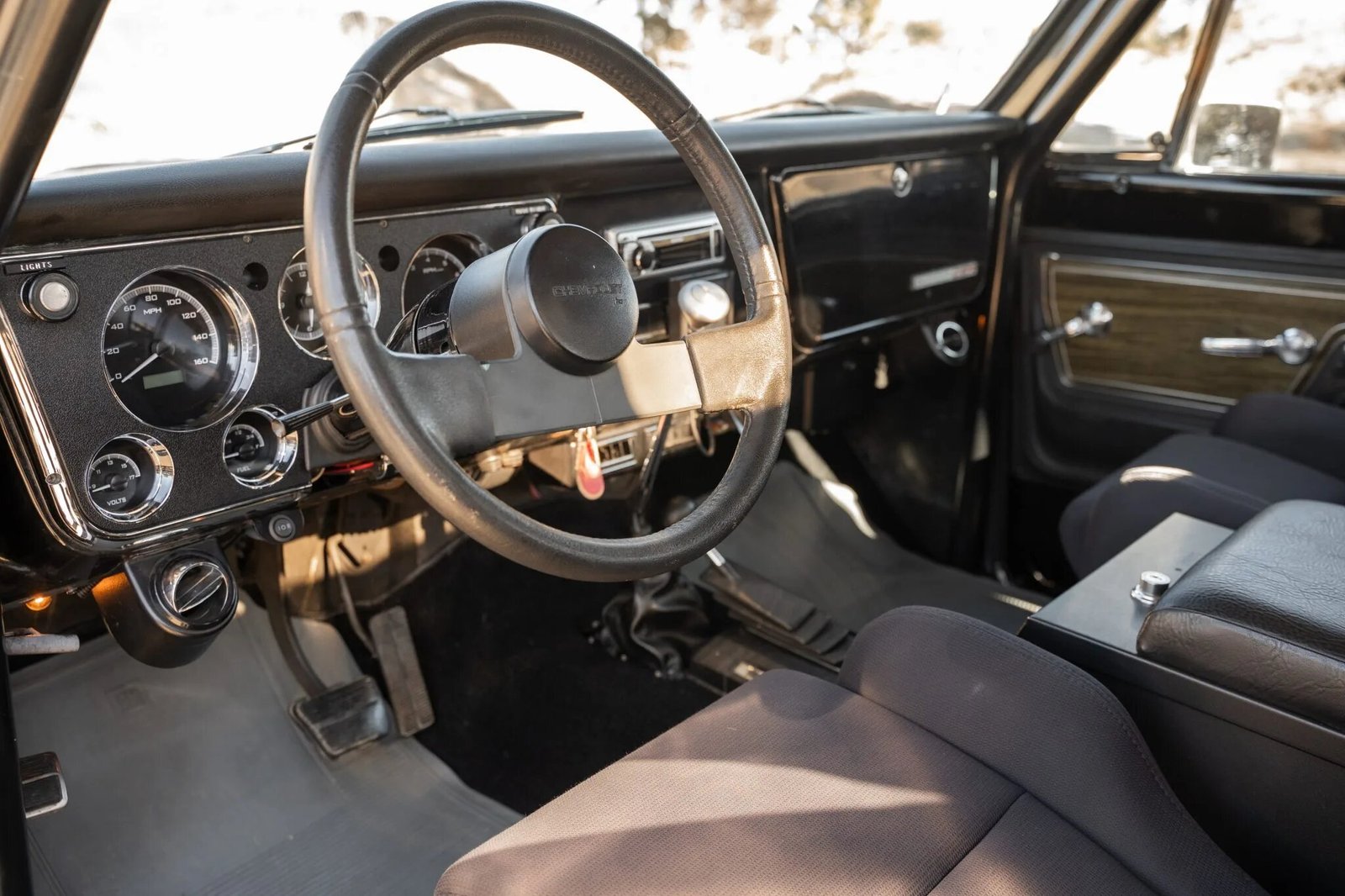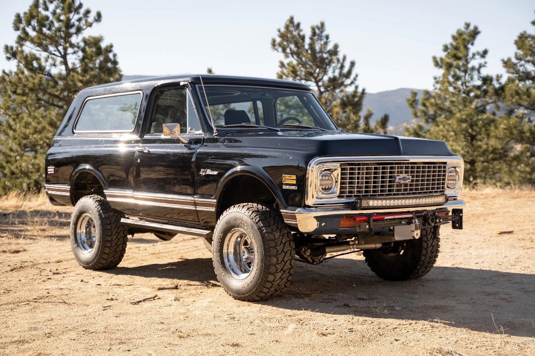 This 1972 Chevrolet K5 Blazer is a black-on-black example and is powered by a 383ci stroker V8 paired with a TCI Automotive 700R4 four-speed automatic transmission, a dual-range transfer case, and 3.73:1 front and rear differentials.