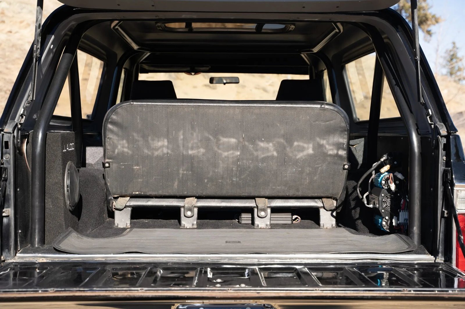 A 2.5″ lift kit is fitted along with custom leaf springs, Fox remote-reservoir shocks, and an ARB rear air locker with twin air compressors and an air locker manifold.